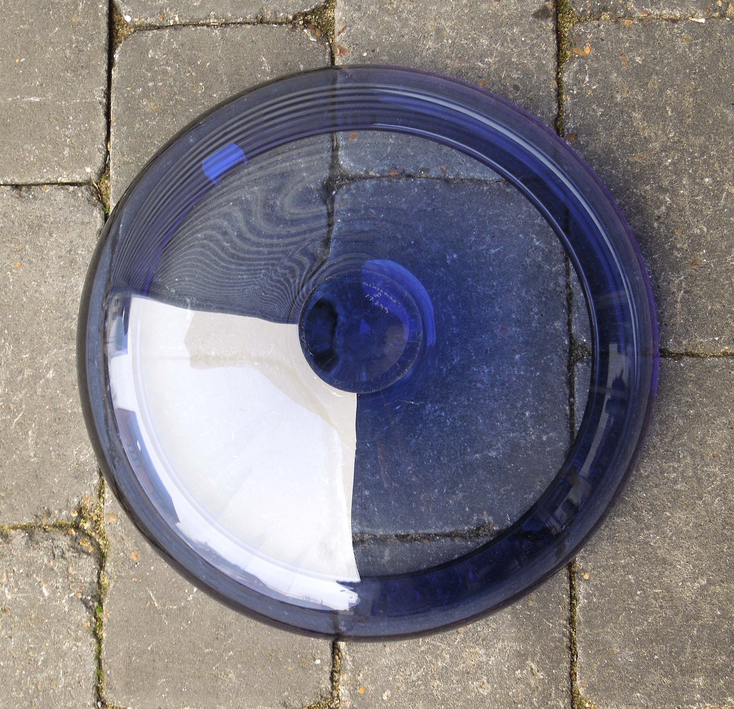 Mellem `Provence´ skål, nr. 17793 i klart blåt glas. Skålen er designet at Per Lütken for Holmegaard.