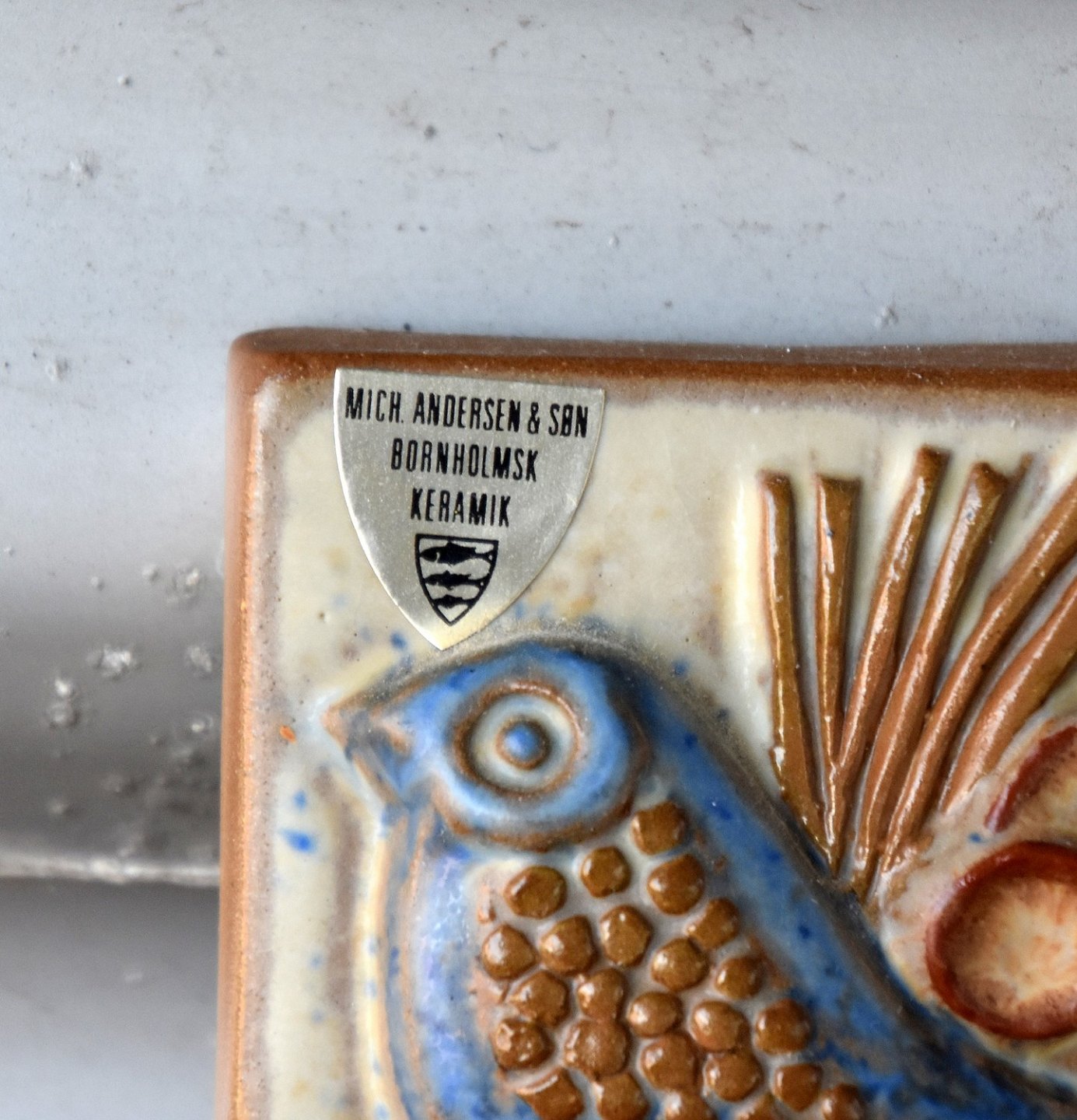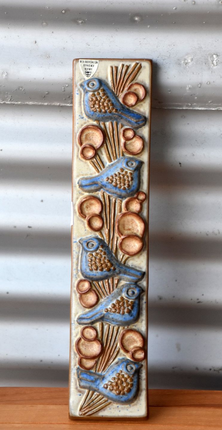 Relief med 5 blå fugle af Michael Andersen.