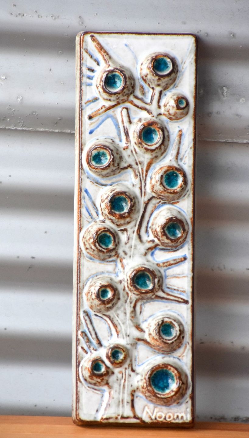 Rund blå blomster på gren. relief, Noomi 3557, Søholm Bornholm Stentøj