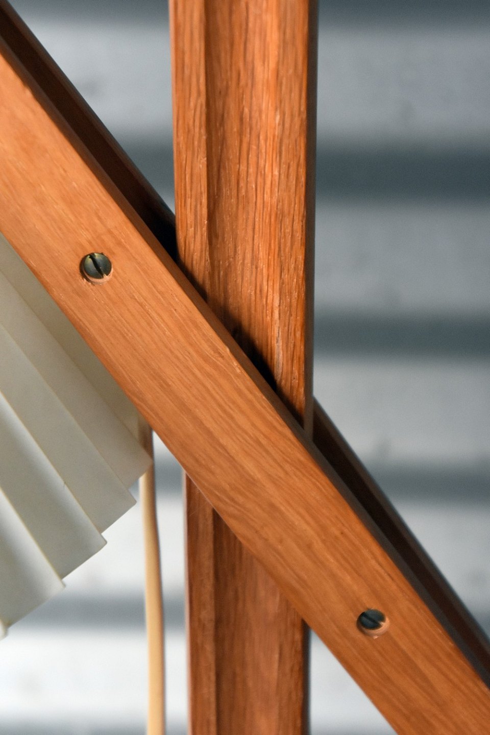 Gulvlampe nr.: 325 af Wilhelm Wohlert. Lyst eg. Justerbar højde og vinkel H.. 152 cm B.: 75 cm