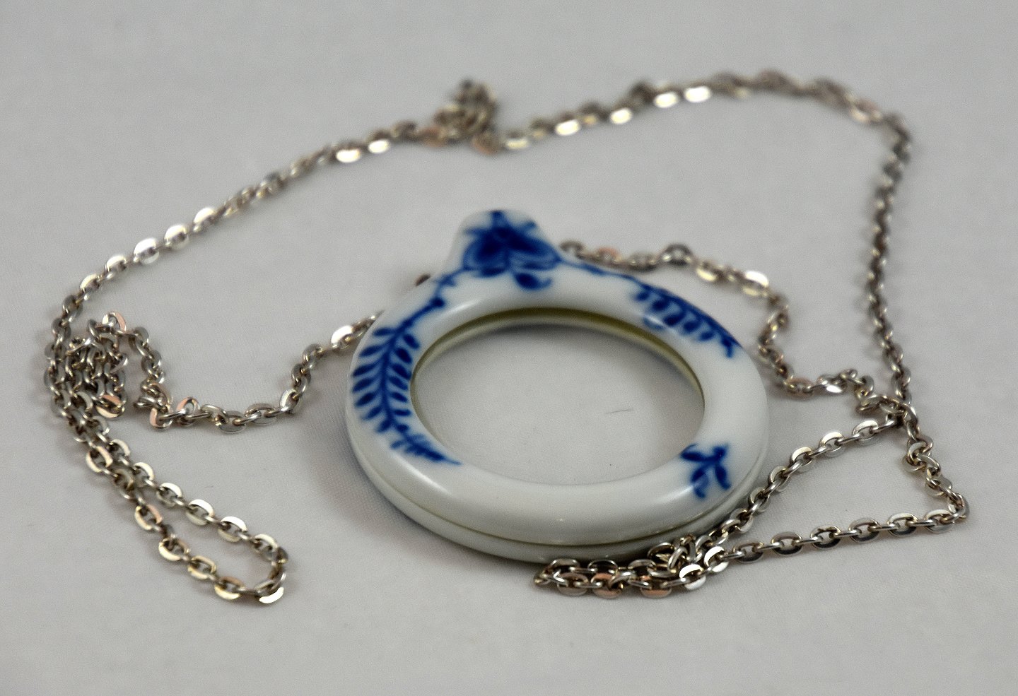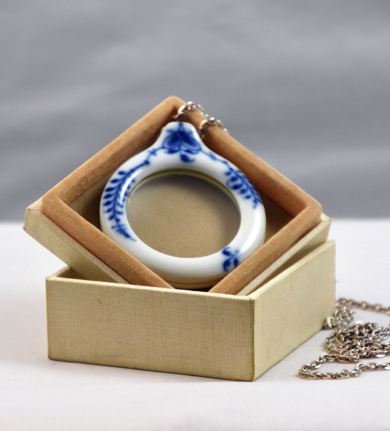Musselmalet lup med kæde. Original æske