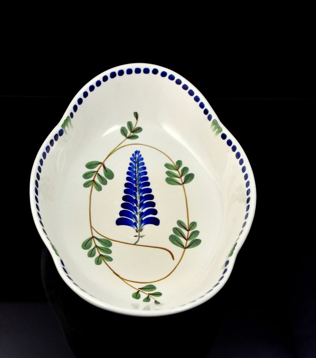 Blåregn ovalt fad fra Aluminia nr. 522/617. Skål med bølget kant.