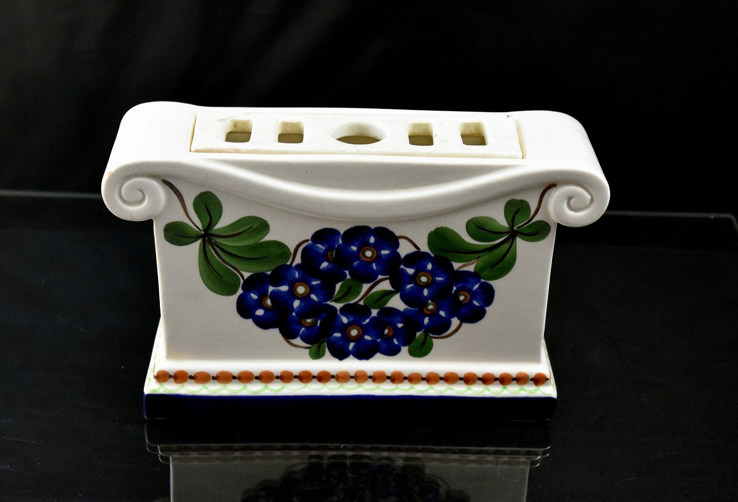 Blomsterkumme blåt blomster-motiv med indvendig rist med reparation.