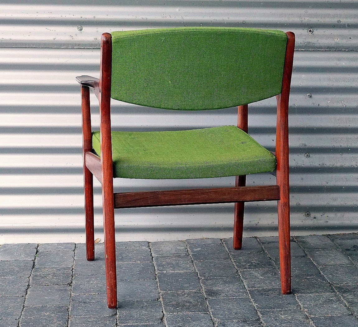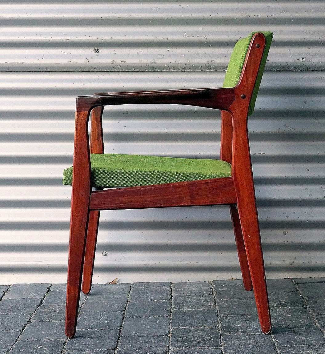 Palisander stol med grønt betræk, design Erik Buck. Fremstillet på Ørum Møbelfabrik. Armstol.