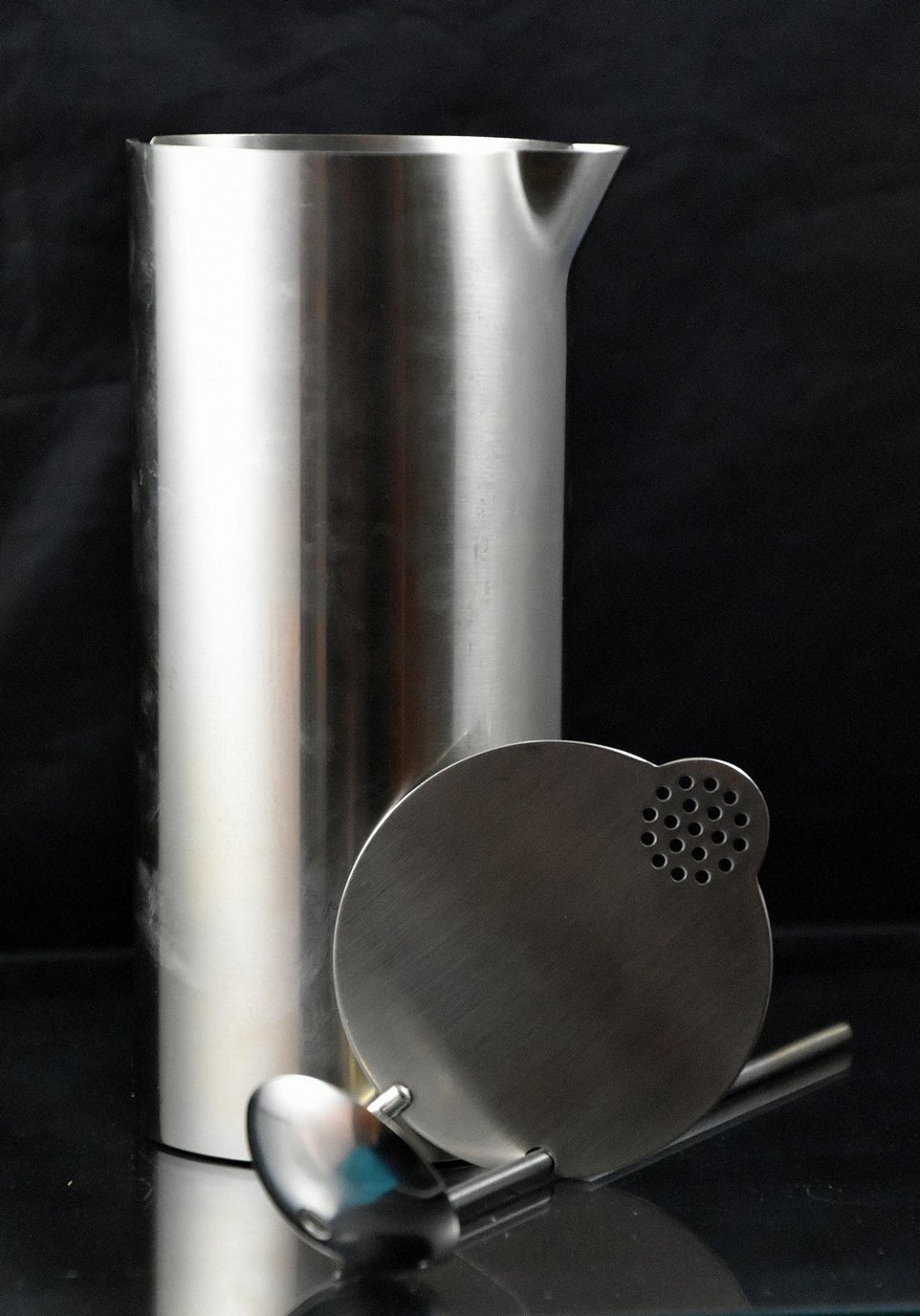 Kande til at mixe drinks i, fra Stelton, med ske og si låg.