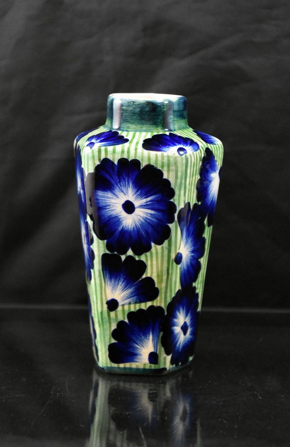 Kantet Vase m/blå blomster