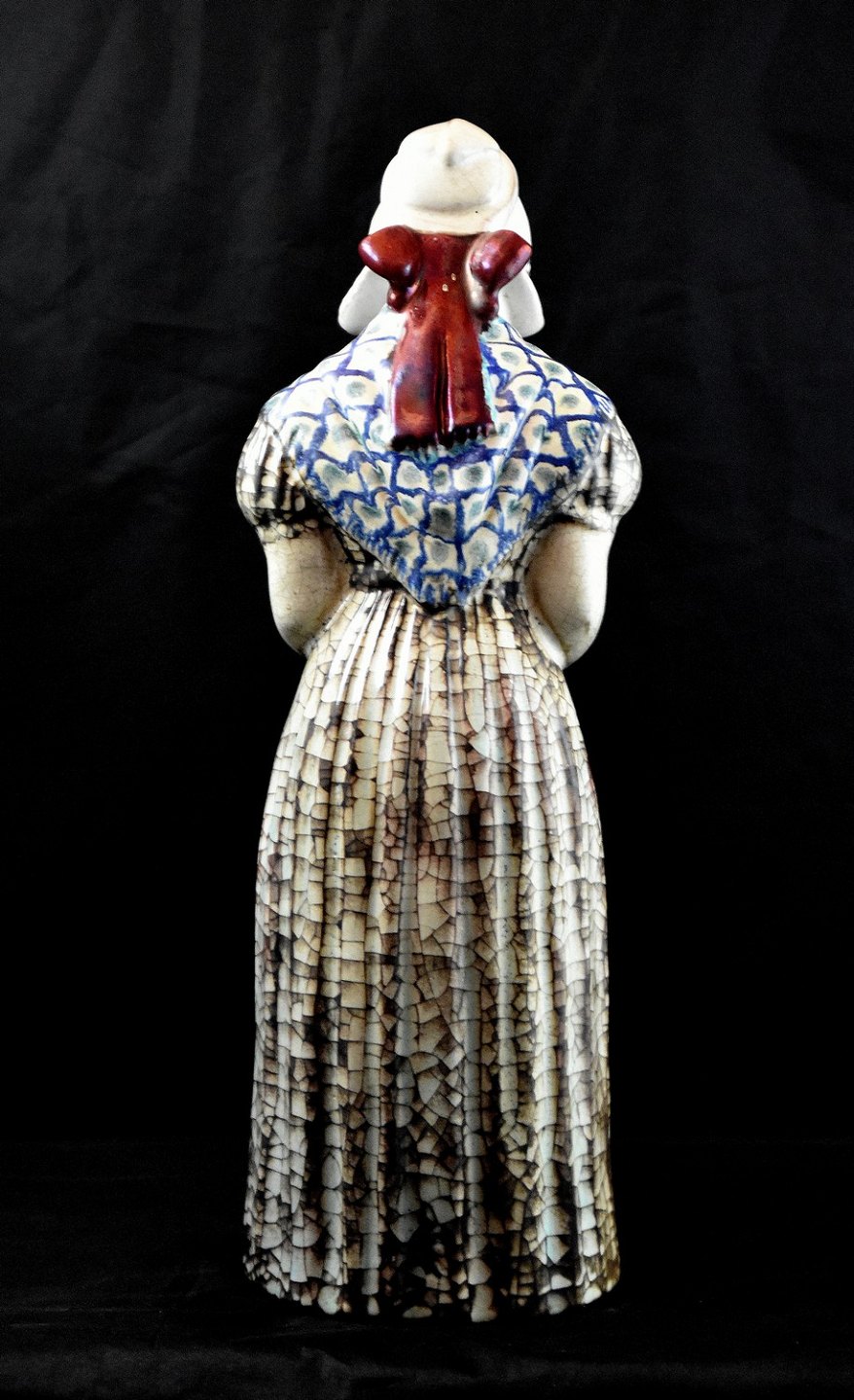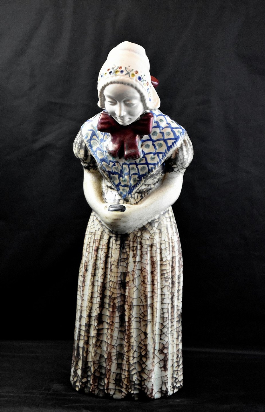 Figur i glaseret keramik med motiv af stående kvinde med bønnebog nr. 4118/2