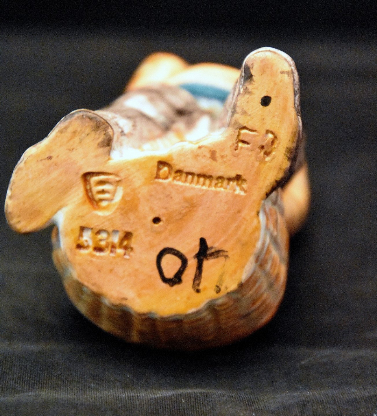 Figur i glaseret keramik med motiv af fiske med kurv nr. 5314