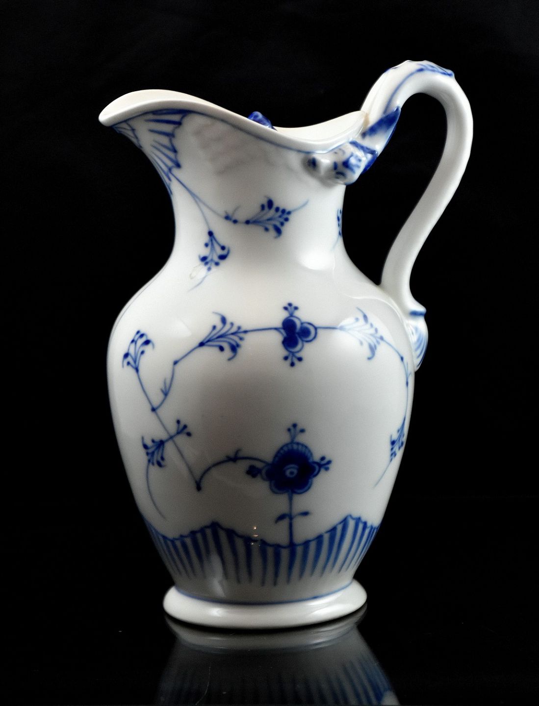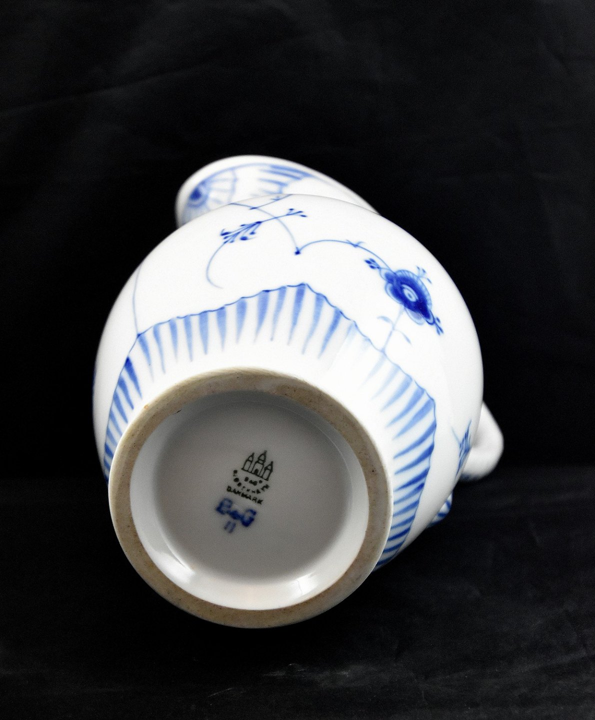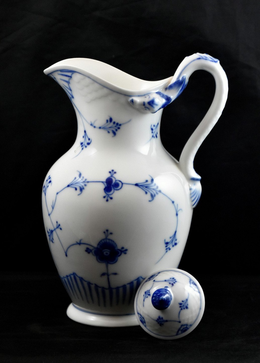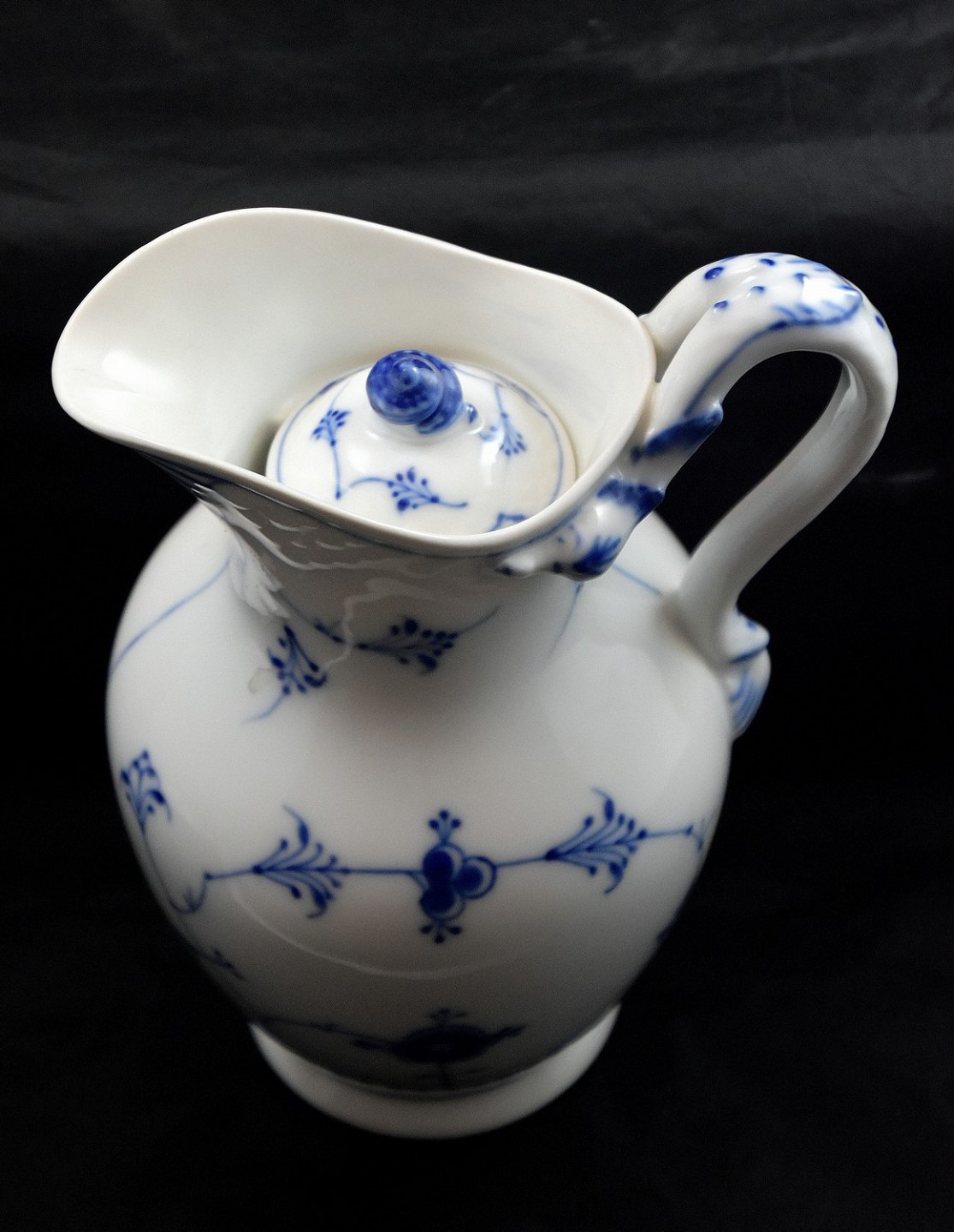Bing & Grøndahl, blåmalet chokoladekande med låg i musselmalet mønster.