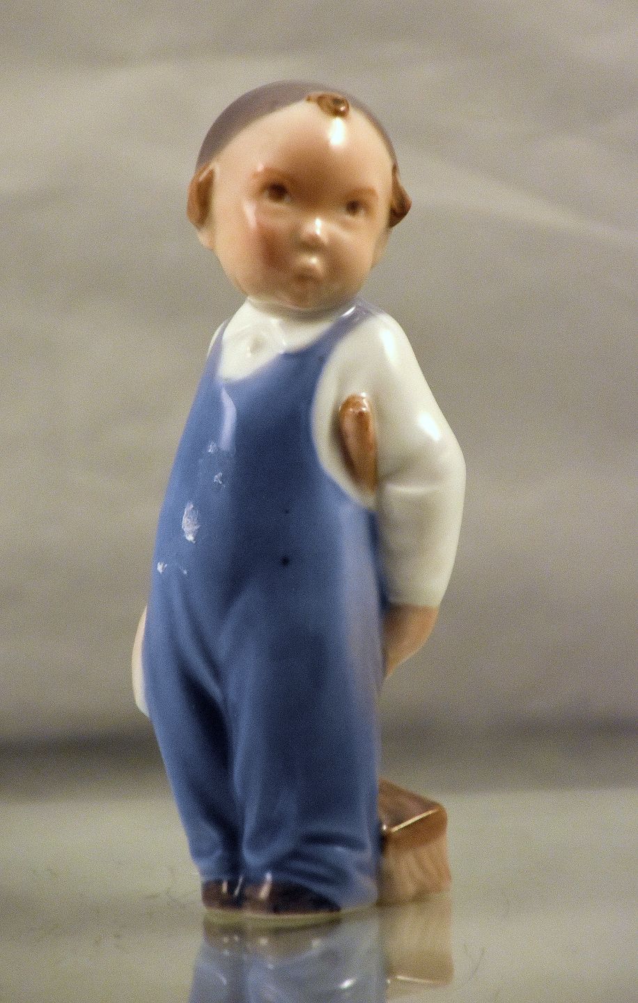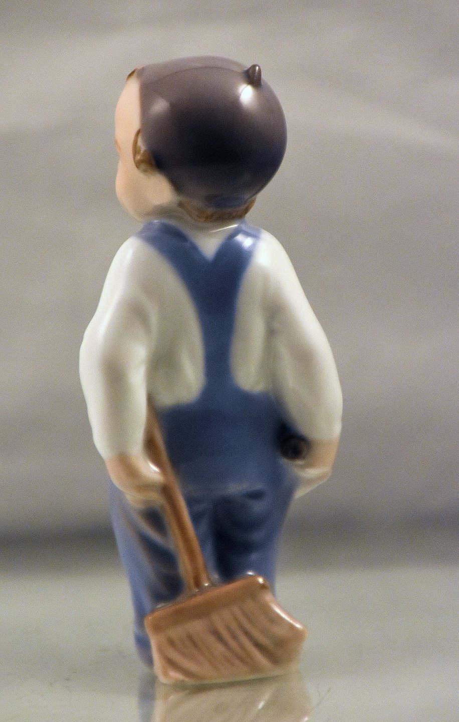 Royal Copenhagen figur Dreng, i blå overtræksbukser, med kost (3250) Design Aage Erhardt 2. sortering