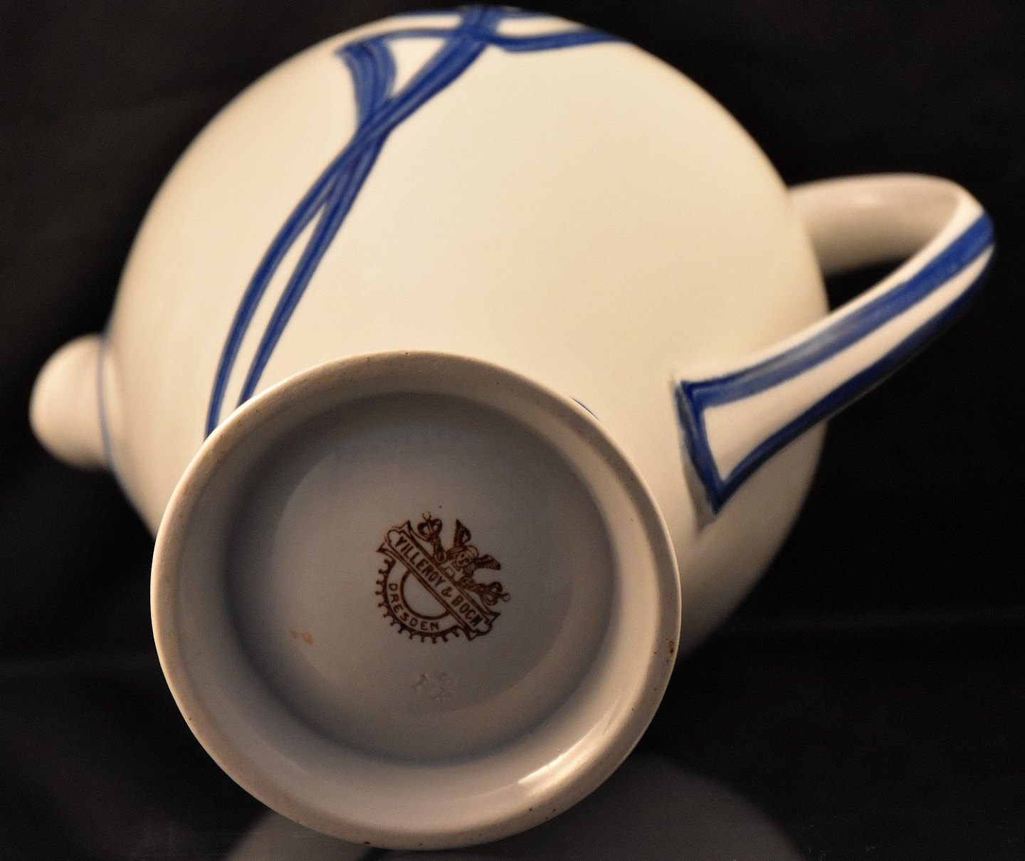 Villeroy & Boch, Dresden. Chokoladekande, Blå Olga, med låg, model Oder.