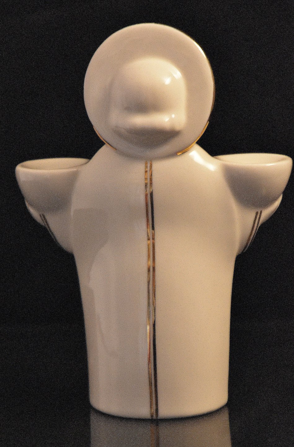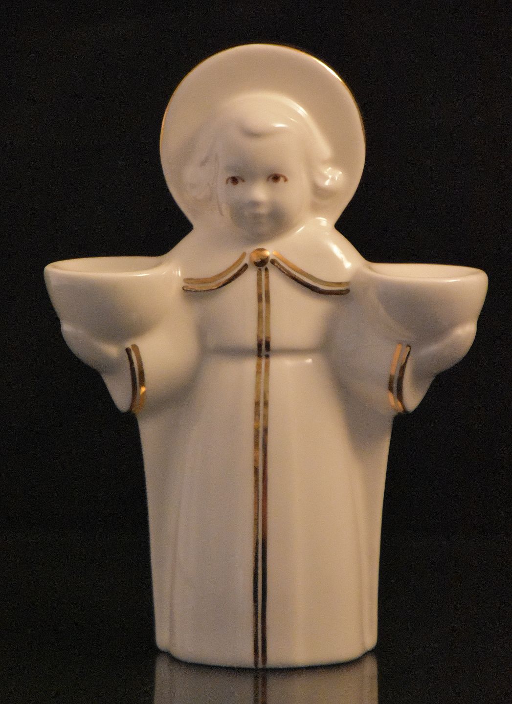 Royal Copenhagen Fajance engel med 24 karat guld belægning. Kgl. figuren er til 2 kertelys