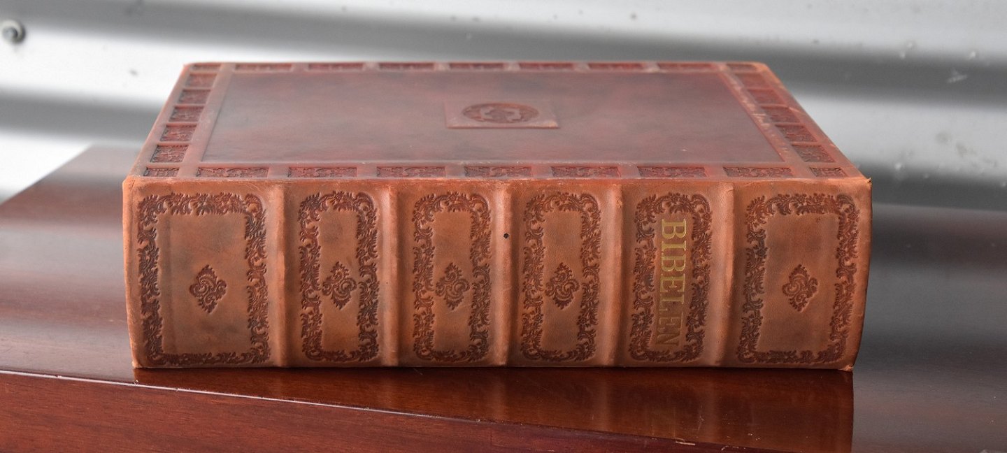Læder indbundet billede bibel, Hjemmets Bibel fra 1936.