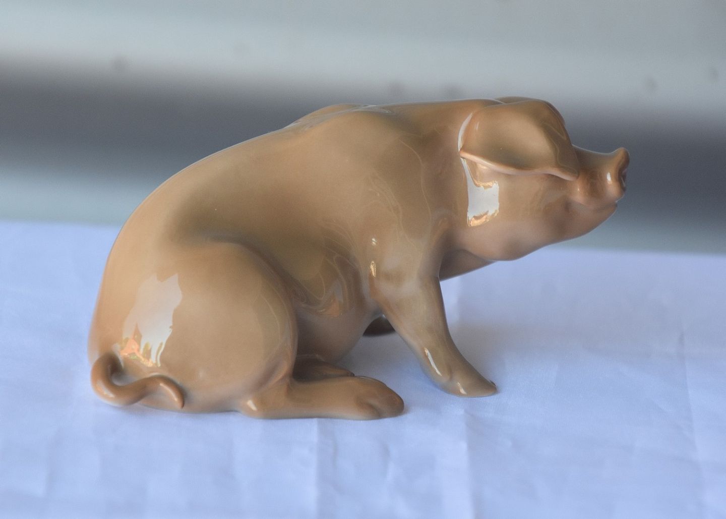 Figur i porcelæn med motiv af en siddende gris nr. 1582