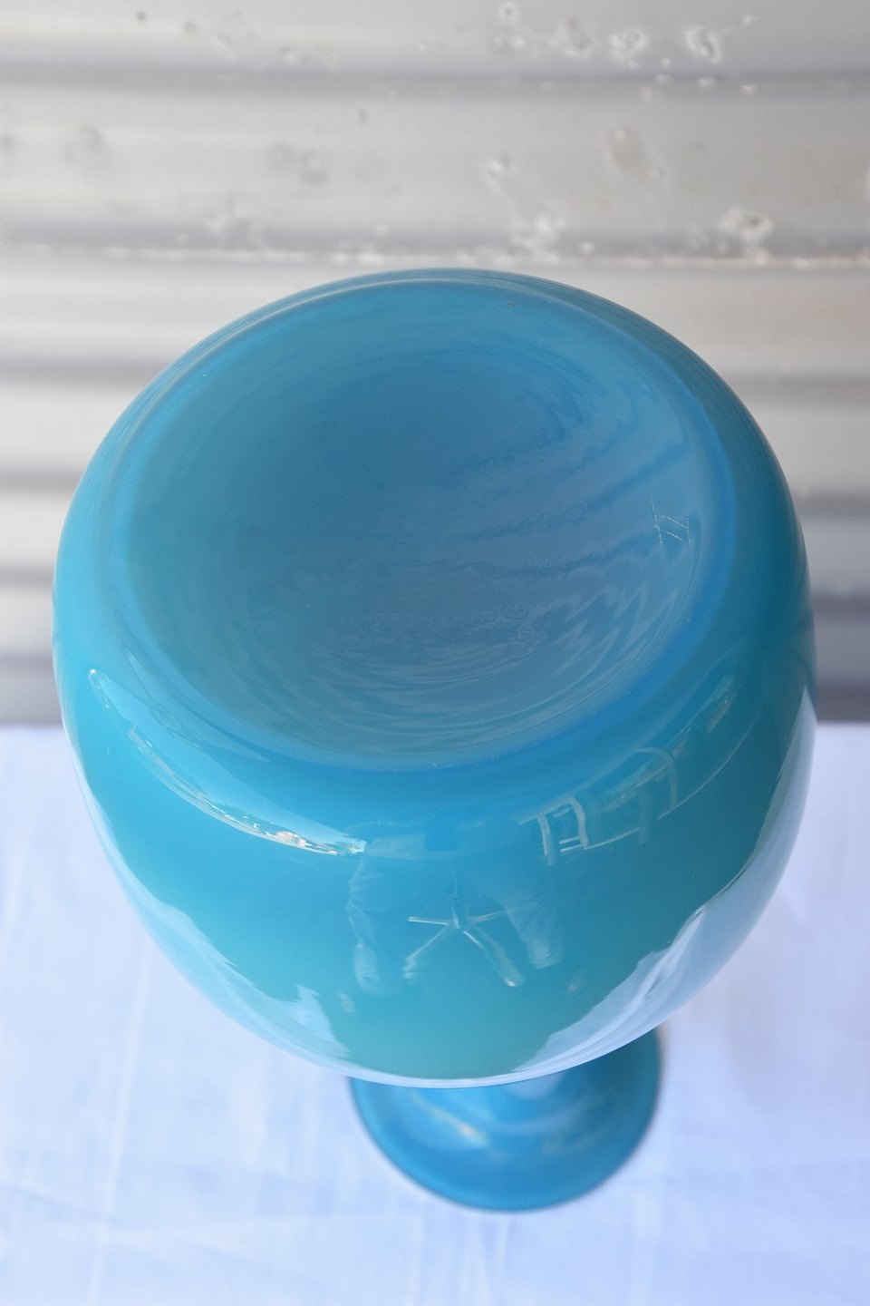 Blå omfangs og hvid opalglas