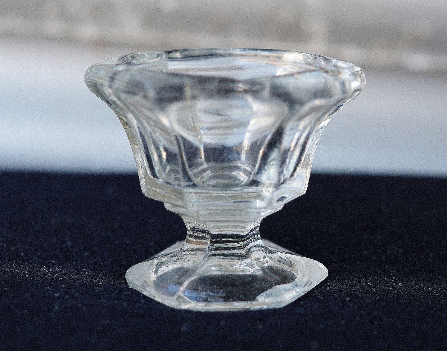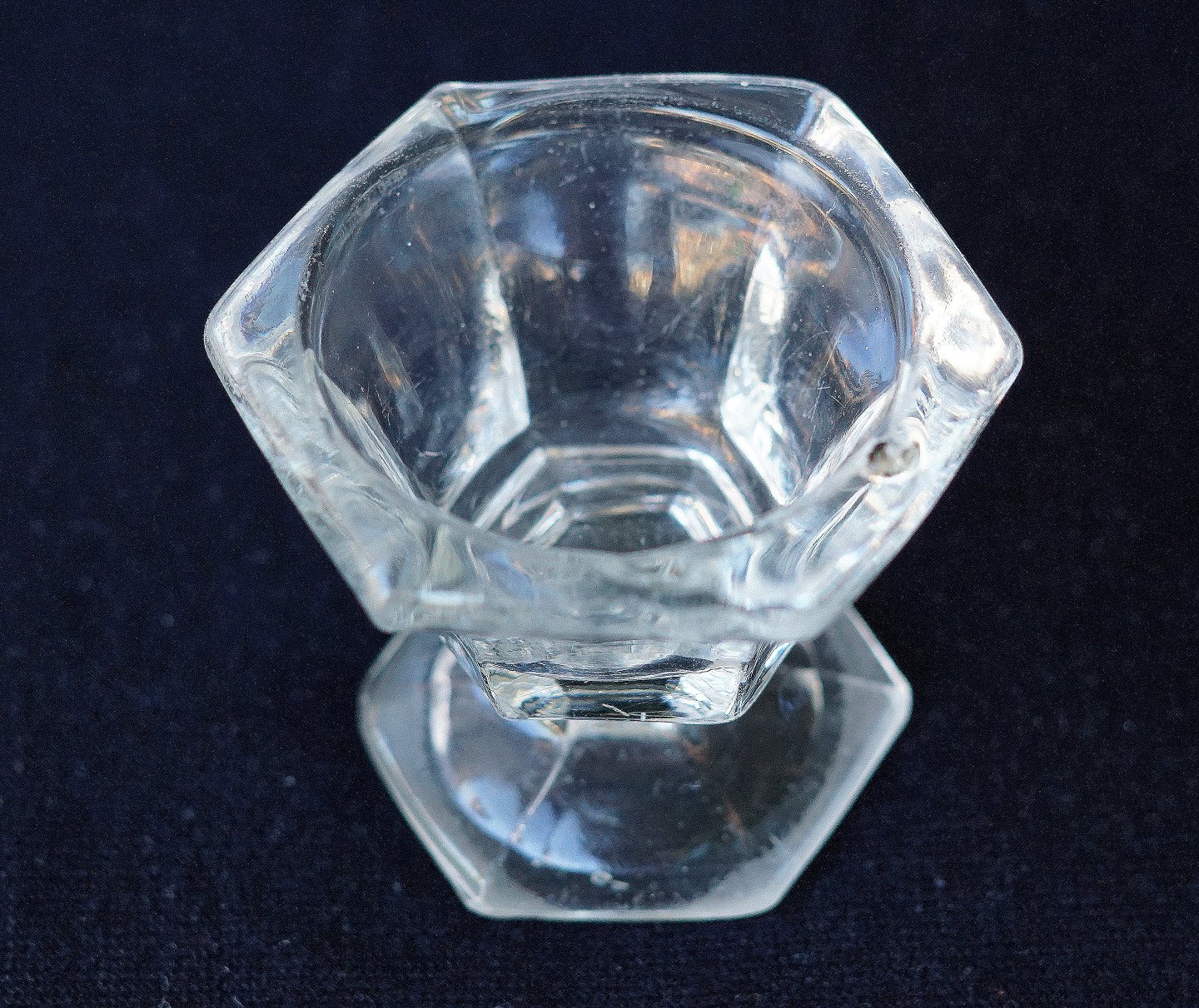 6 kantet saltkar. Krukkeformet, 6-kantet kumme og fodplade