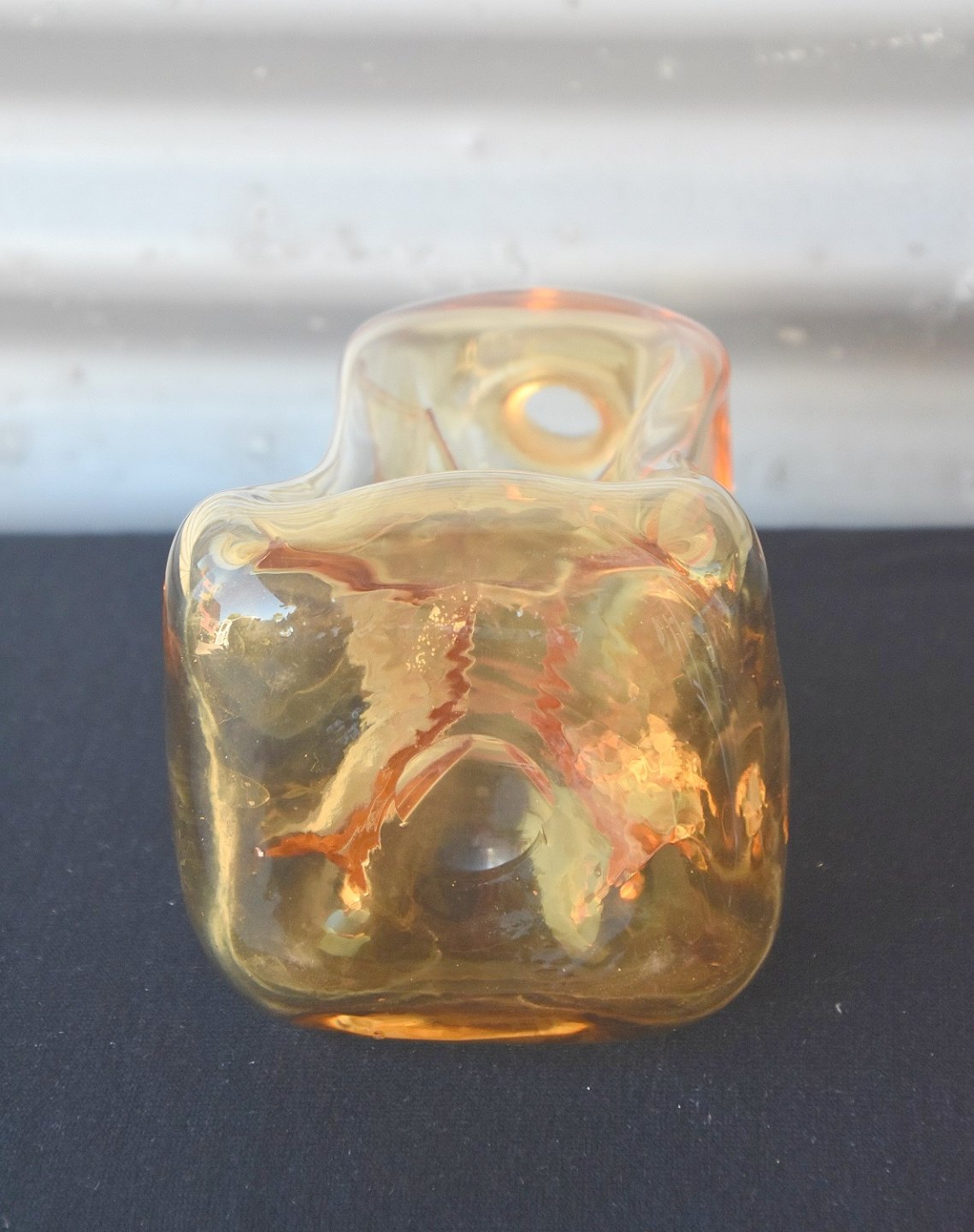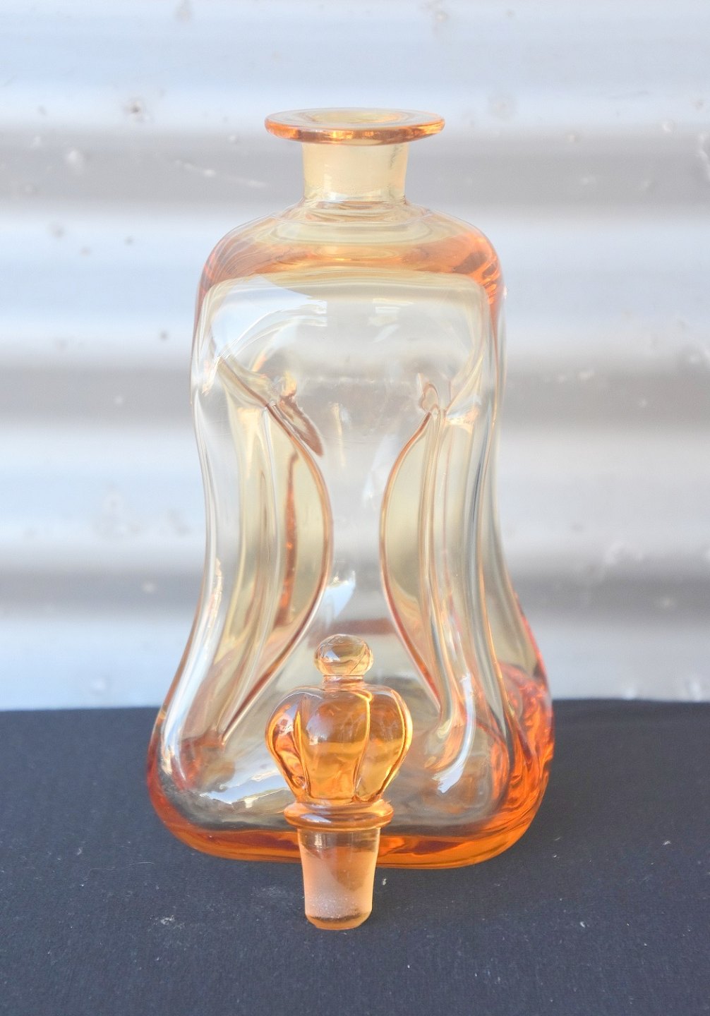 Holmegaard, Klukflask. Klukflasken er rav-farvet og med prop der er udformet som en kongekrone.