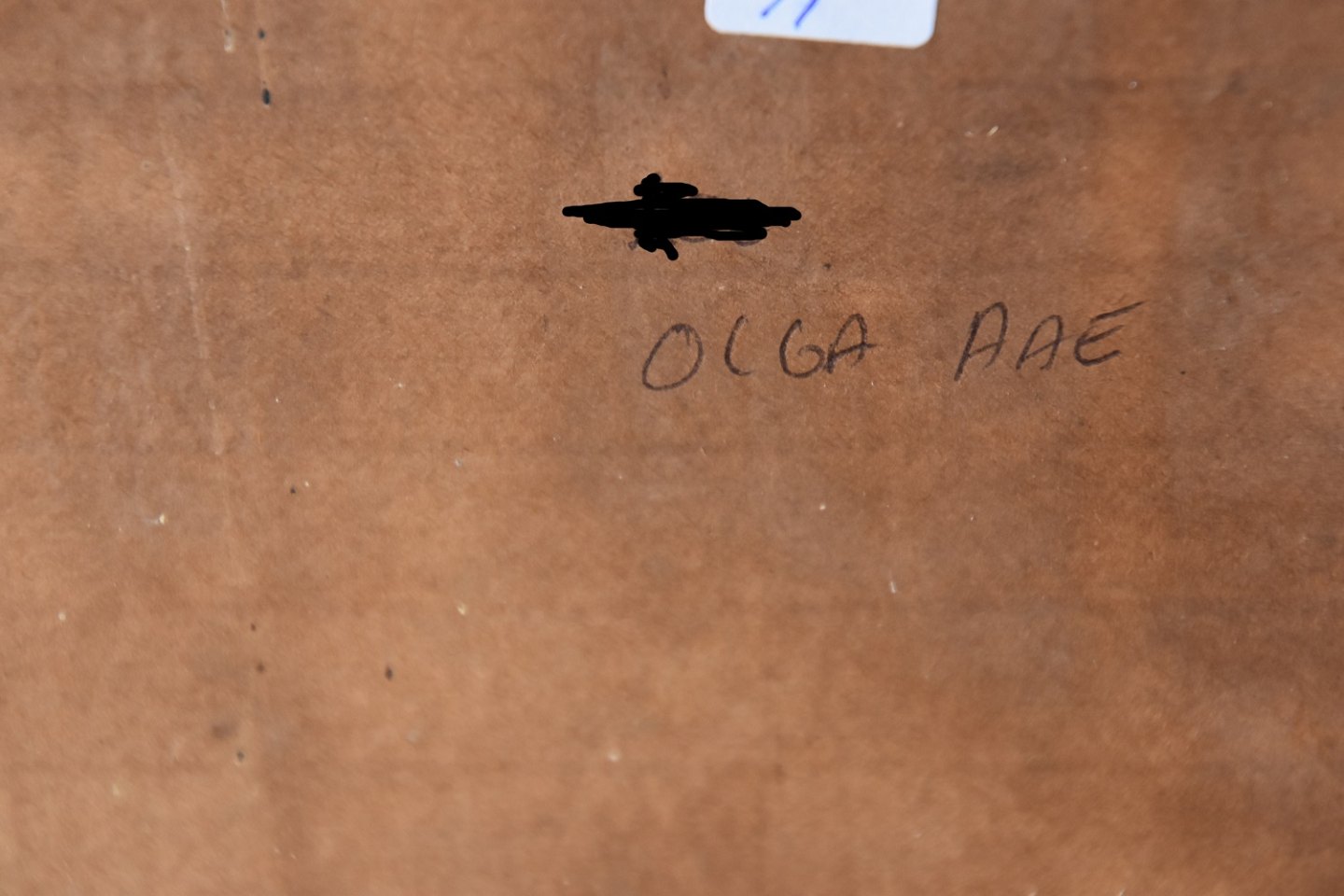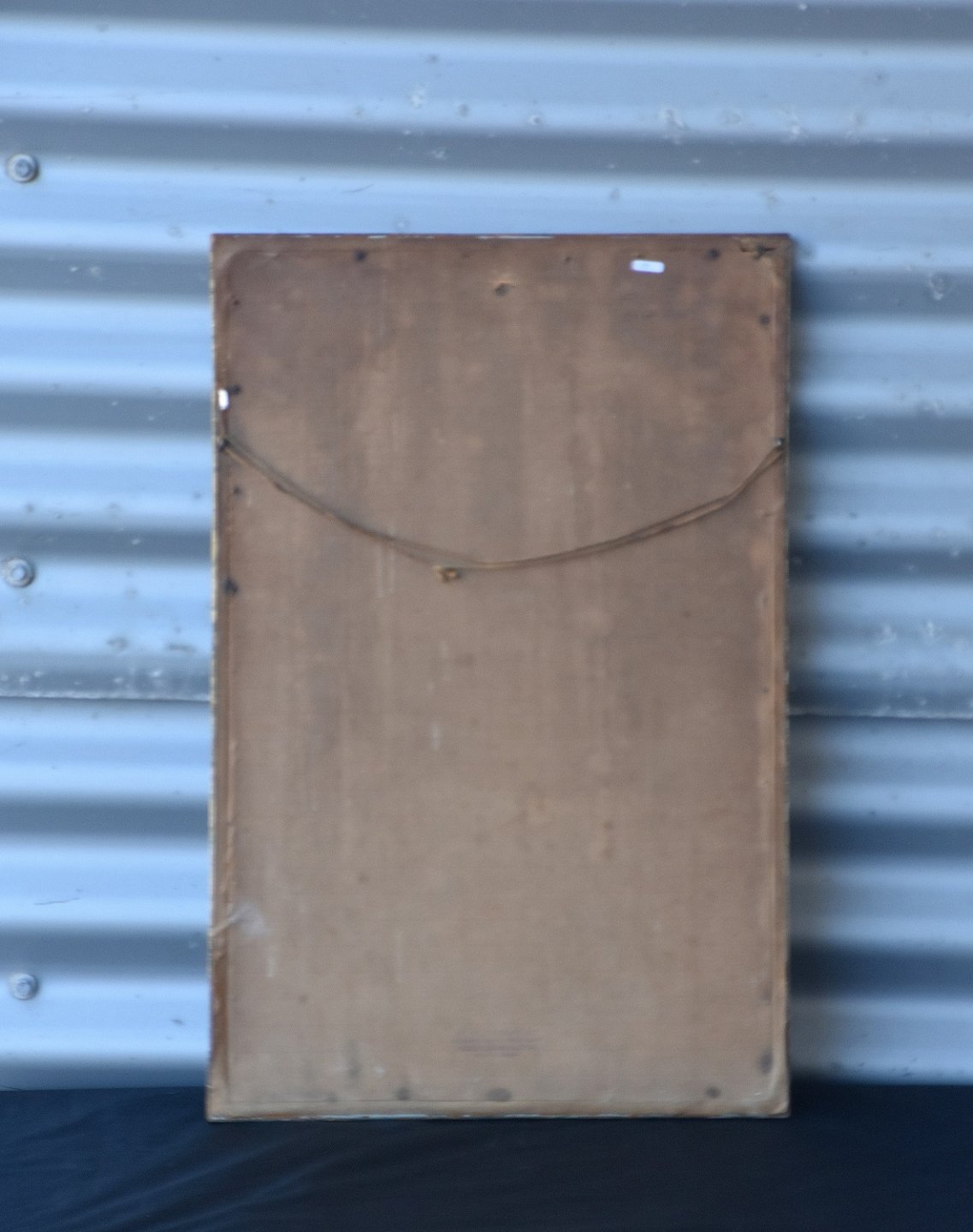Landskab Maleri og broderi på stof. 61x 71,5 cm.