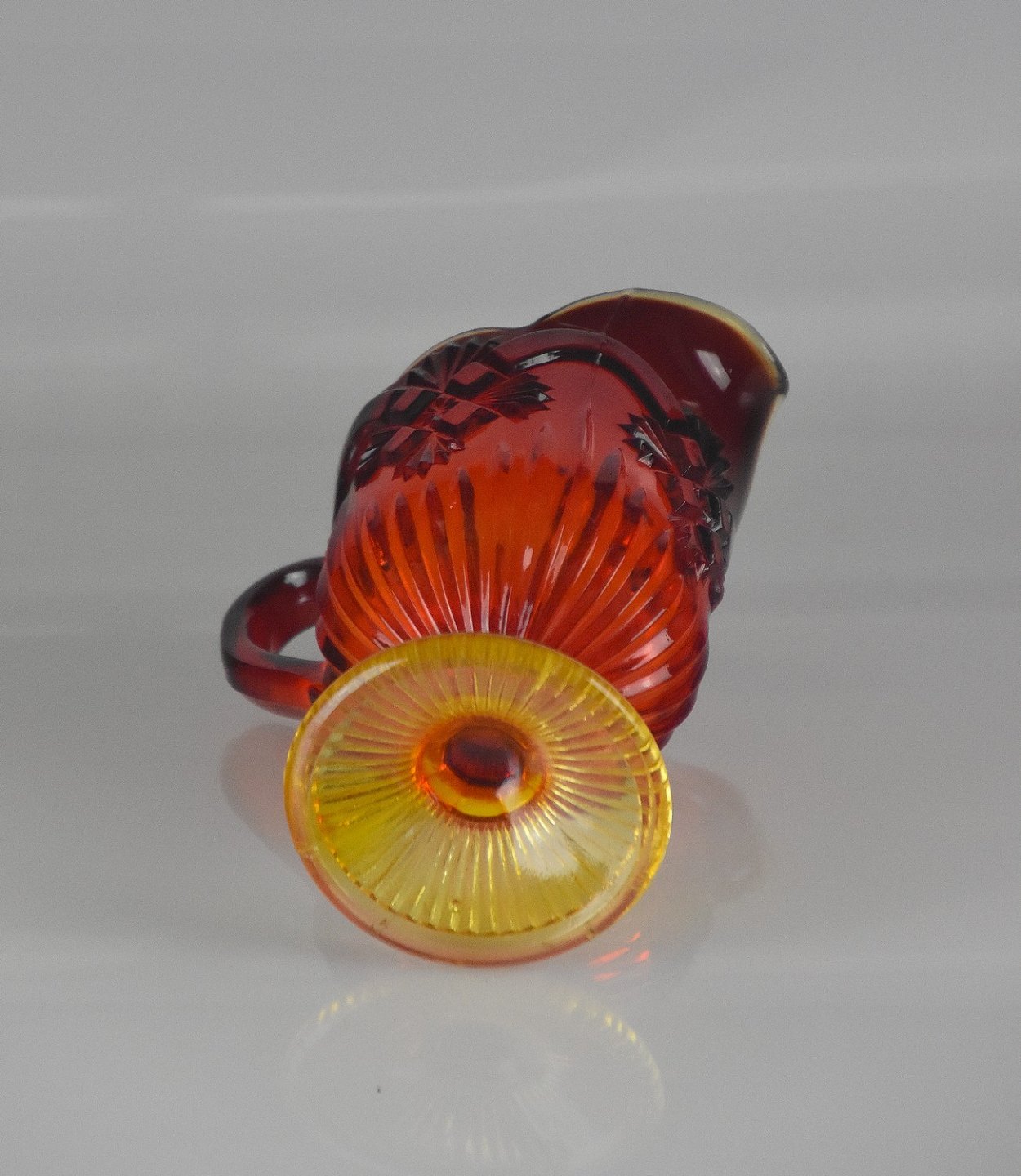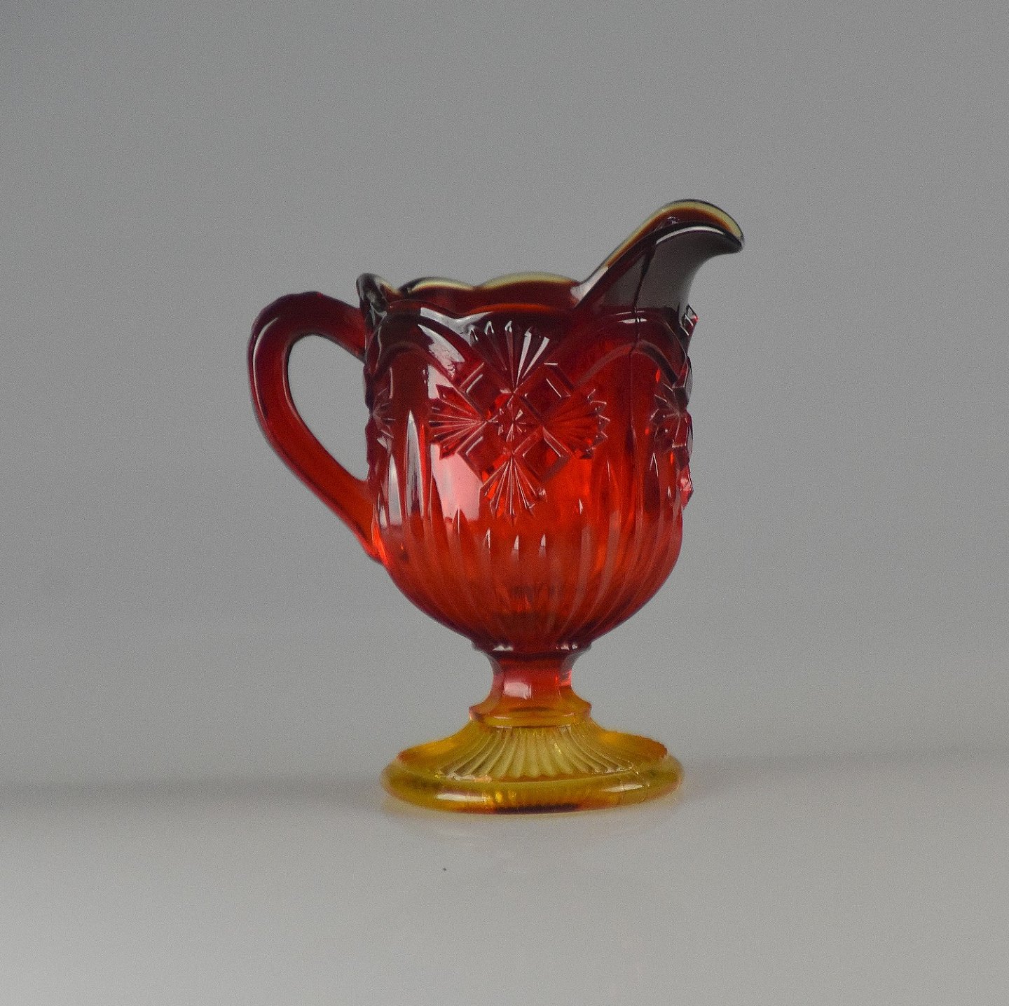 Presset glas, Flødekande fra Fyens Glasværk. Kanden er rød der faider ud til gul