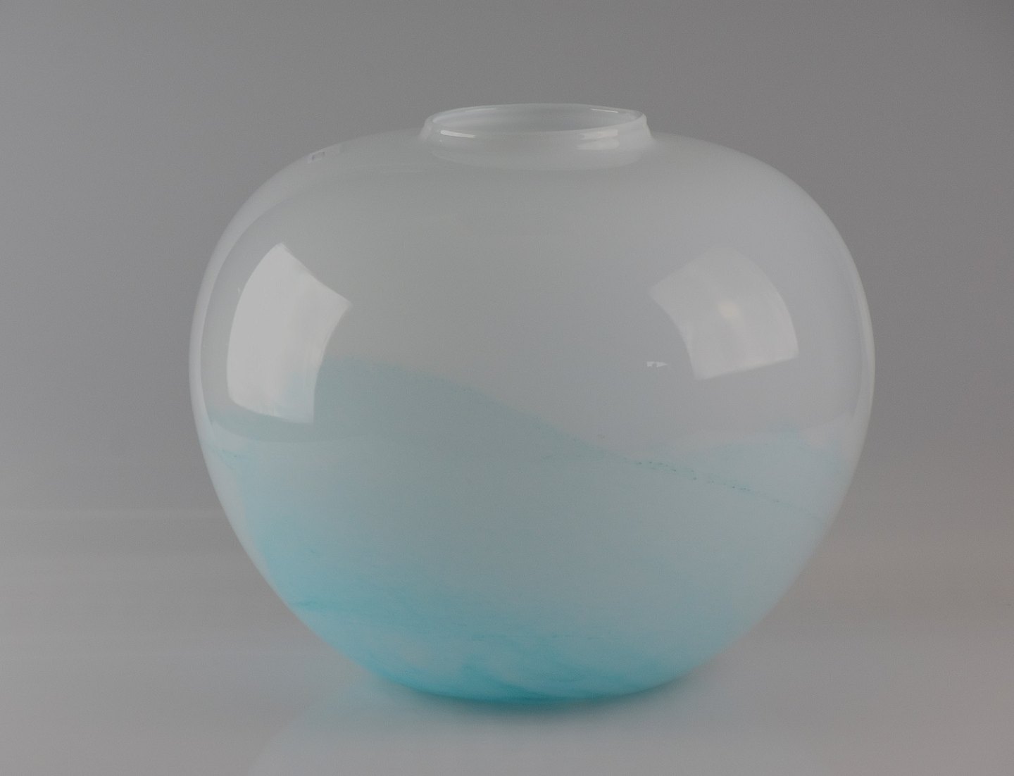 Holmegaard "jasmin" vase. Stor opal glasvase med mint grøn mønster. Designet i 1984 af Mutsue Inuoe