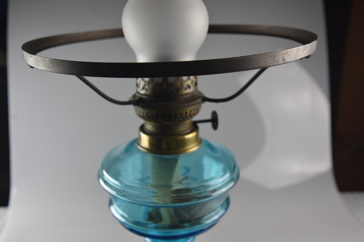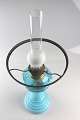 Holmegaard olielampe, opalhvid glasskærm, turkisblå bund