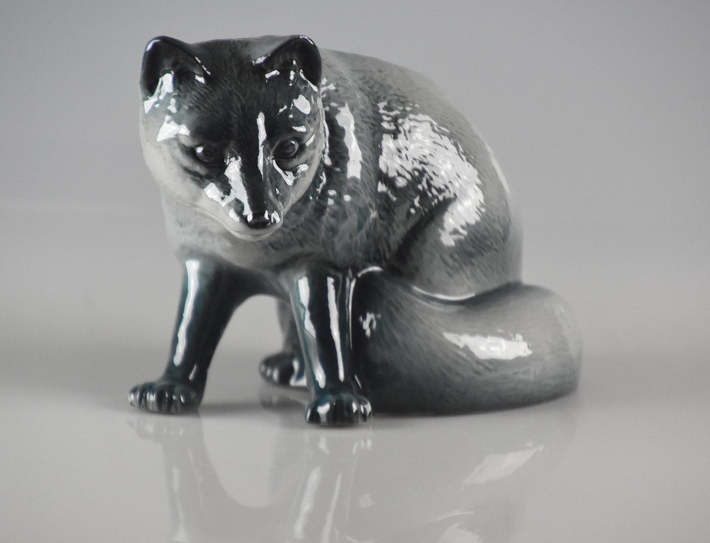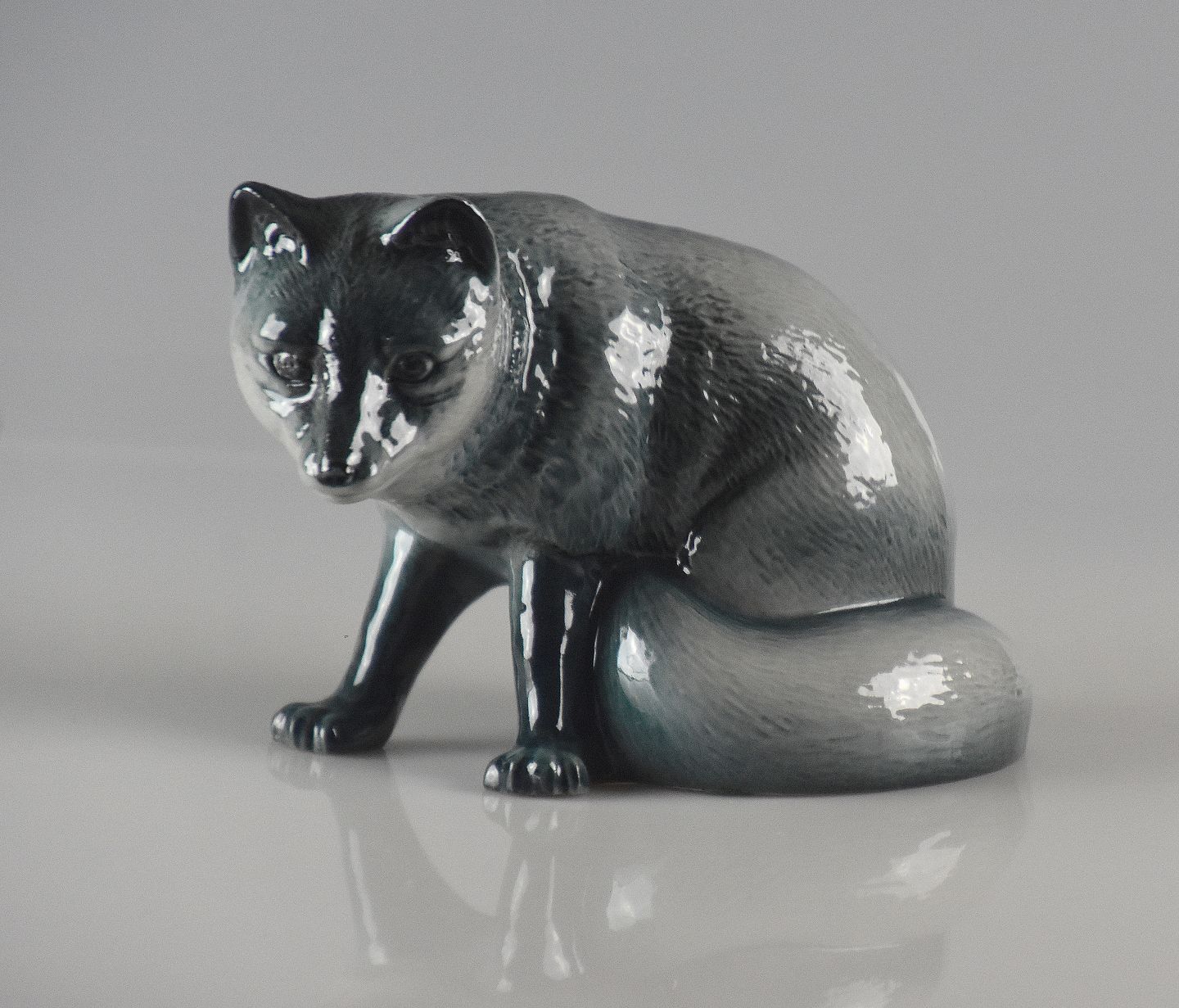 Keramik, keramikfigur, lertøj, lertøjsfigur, figur, rævefigur, blåræv, polarræv figur, Finne Søholm figur