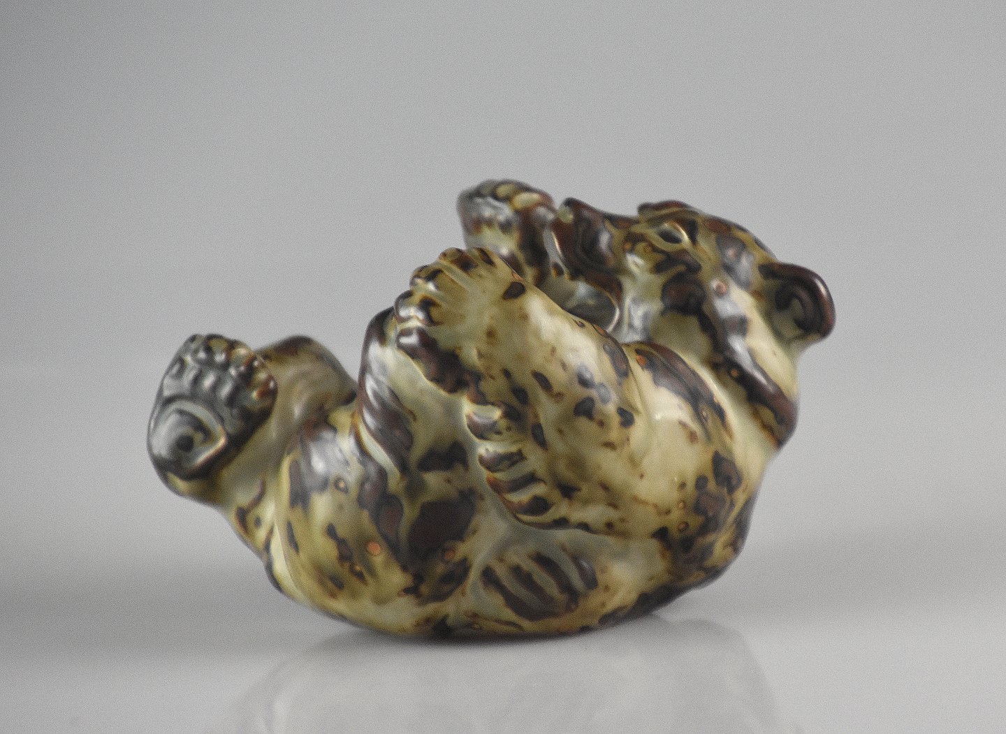 Figur af bjørn liggende på ryggen i stentøj nr. 20271