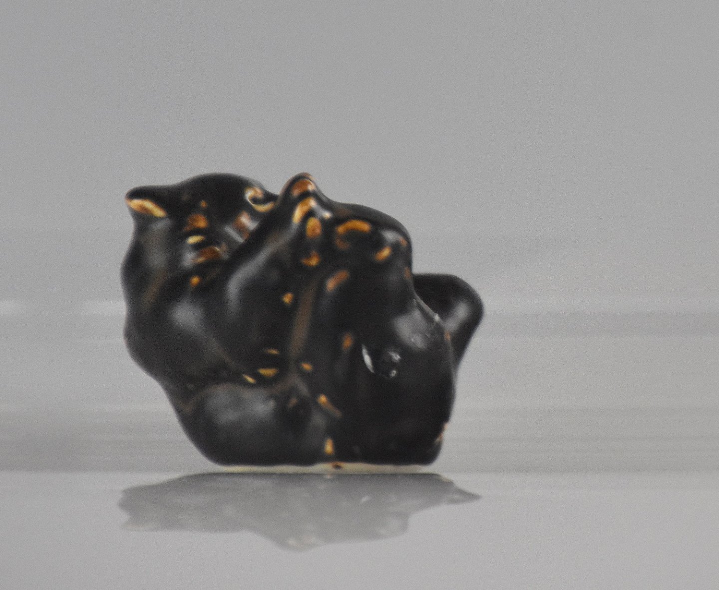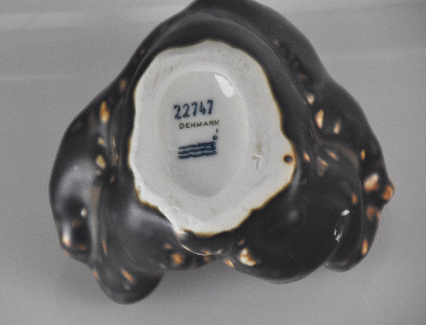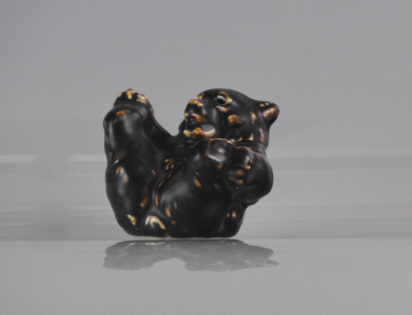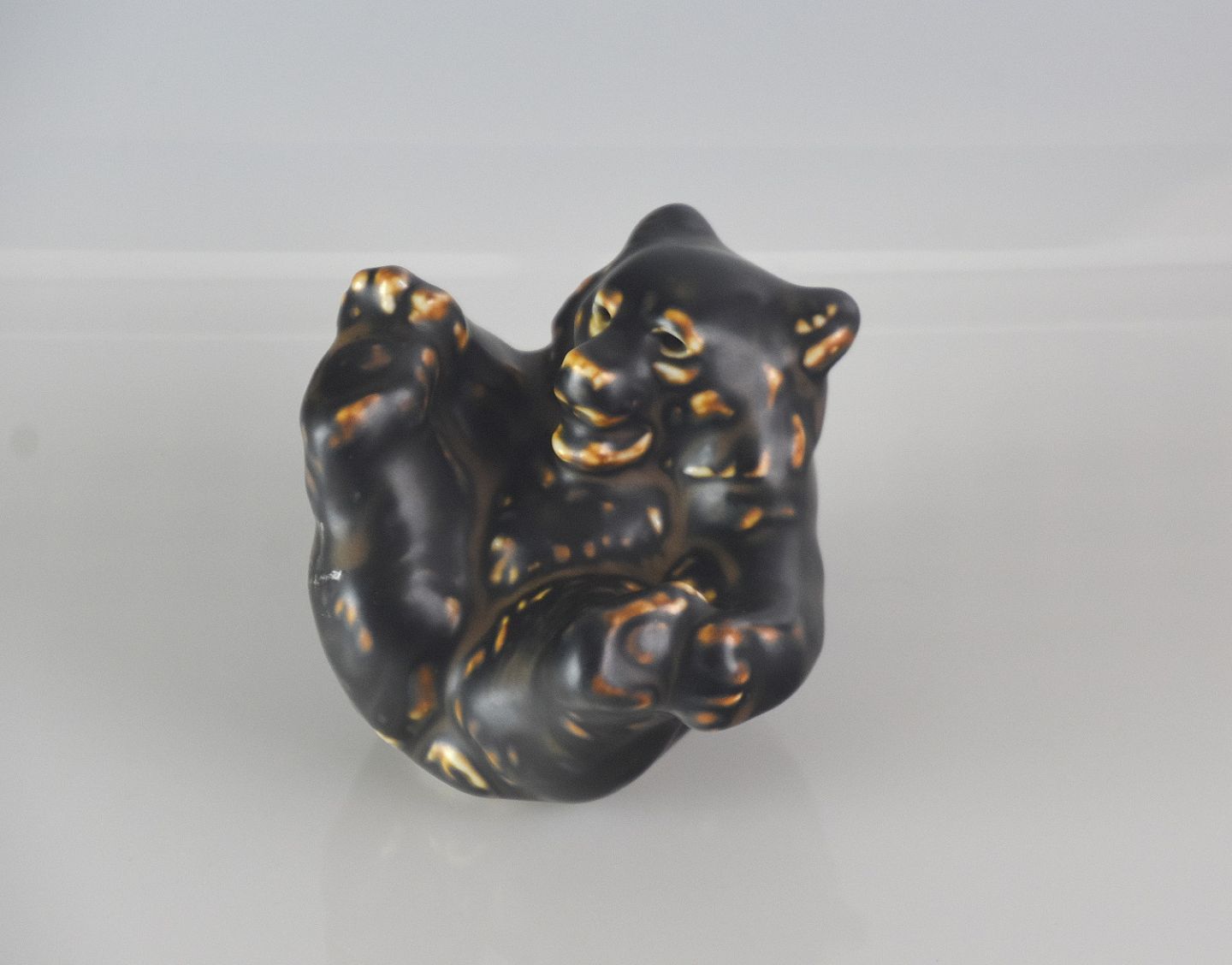 Royal Copenhagen, liggende brun bjørneunge (22747). RC/Kgl. bjørnen lavet efter Knud Kyhn af Jeanne Grut maj 1982. en af 4 sjældne bjørne unger.