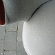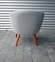 Lænestol, designet af Bent Møller Jepsen, gråligt stof med teak arme og teak ben.