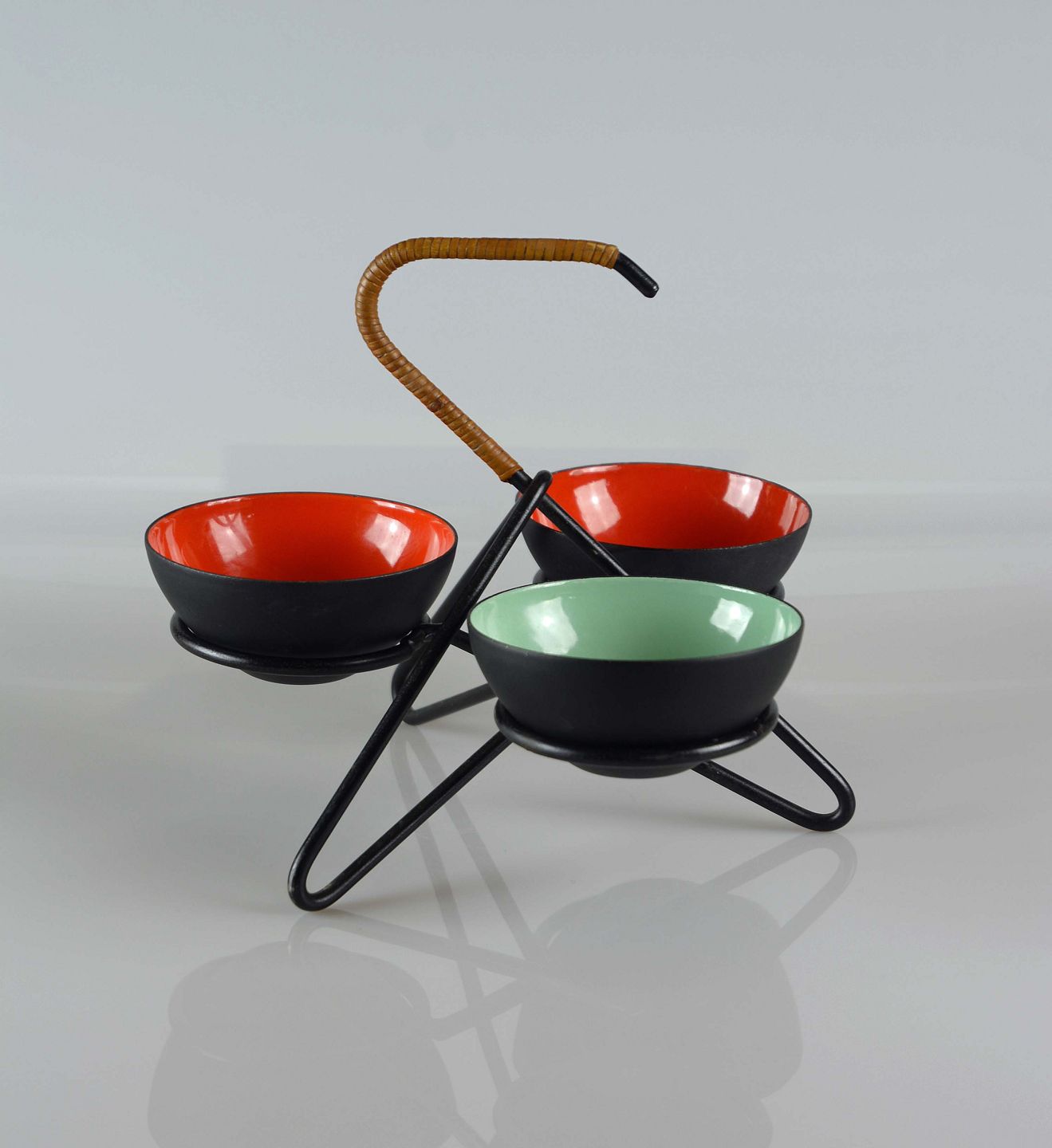 Holderen er i sort metal med håndtag omviklet af bambus.