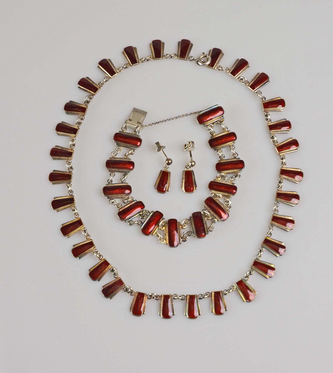 Sættet består af et armbånd, en halskæde og et par ørestikker