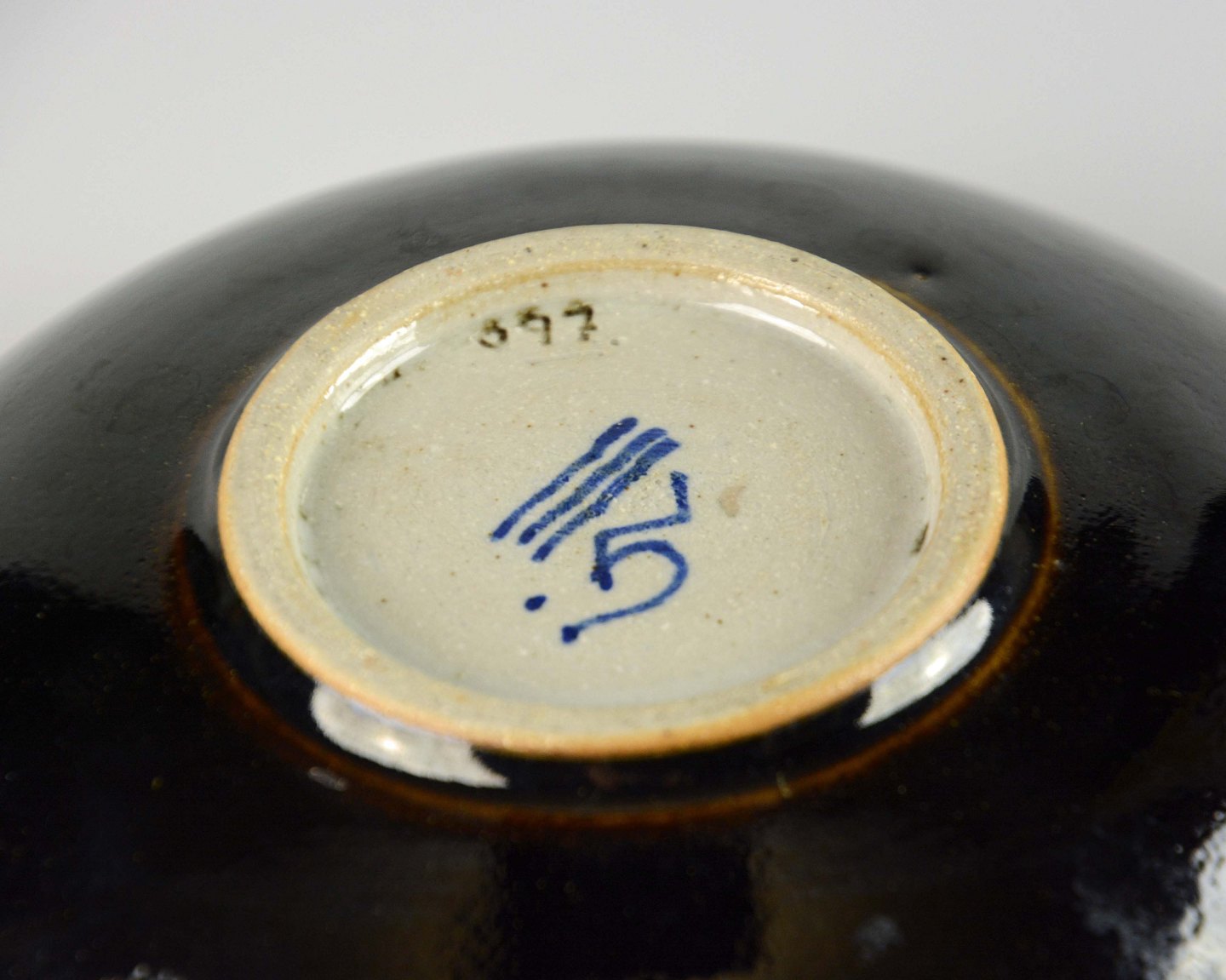 Glaseret keramik skål i brune nuancer med indgraveret nr. 397