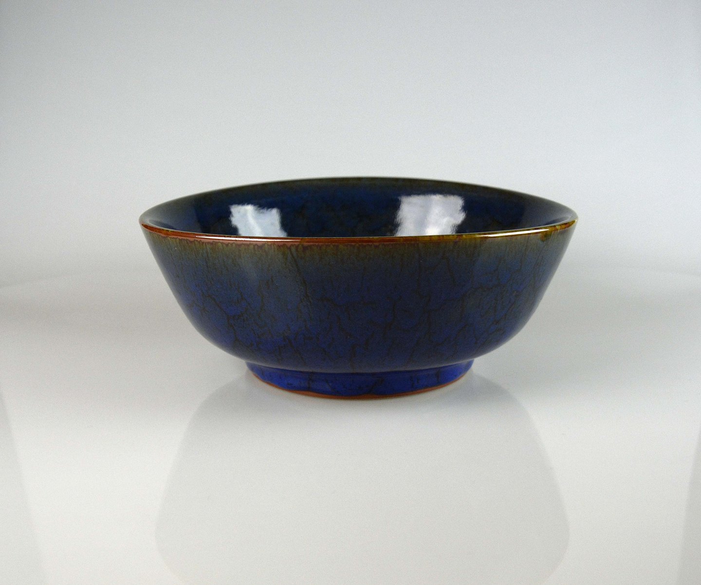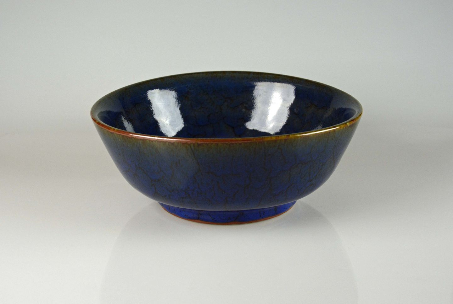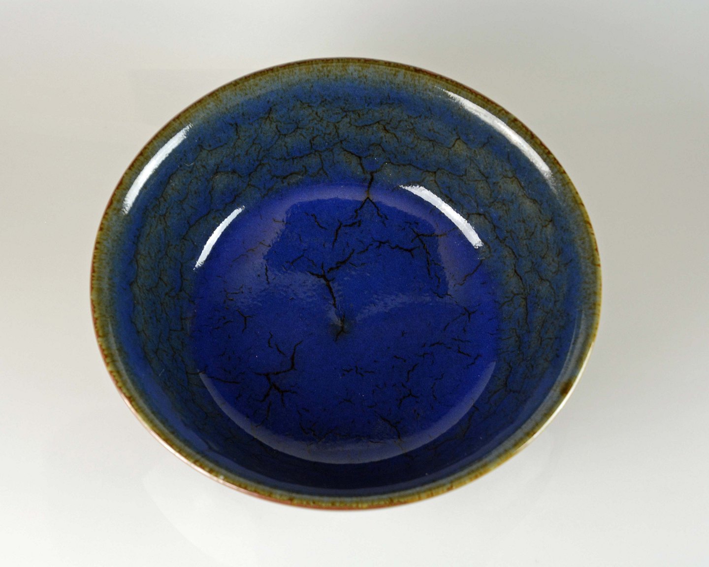 Glaseret keramik skål i blå nuancer.