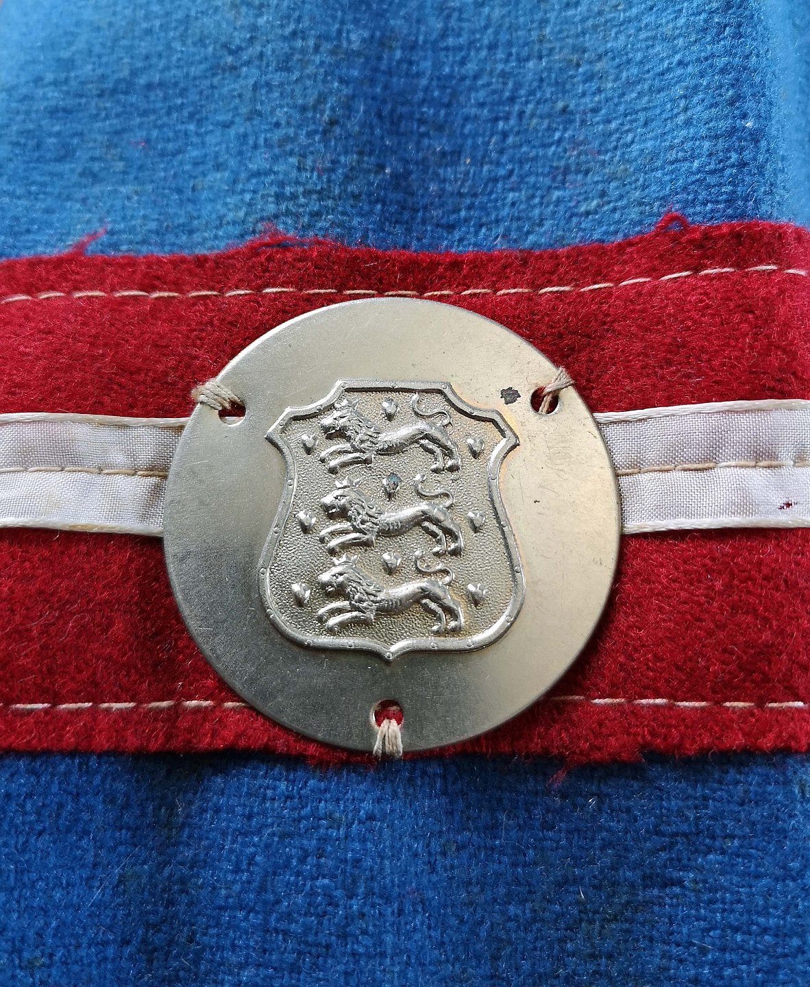Frihedskæmper armbind fra 2. verdenskrig. Armbindene er lavet af gamle garder bukser.