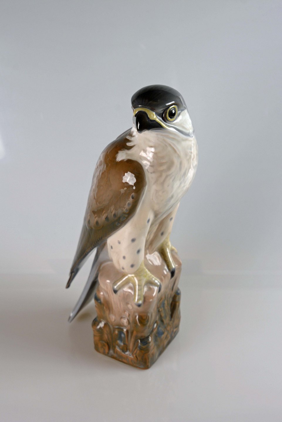 Figur af falk fra Porcelænsfabrikken Danmark der markedsførte Lyngby Porcelænsfigurer, mærket nr. 81A