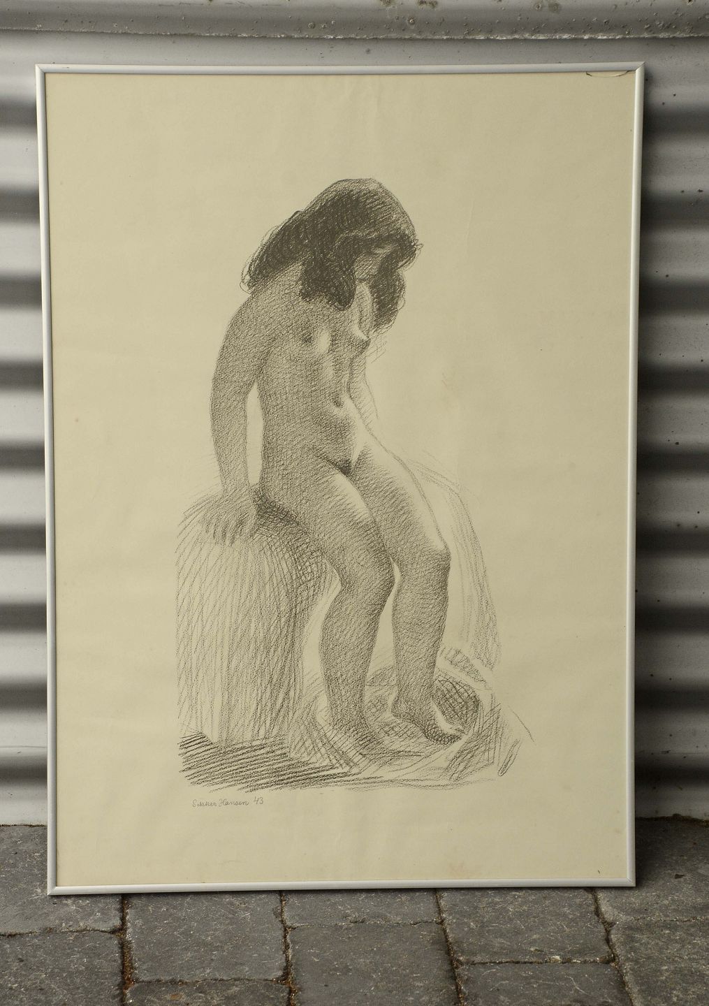Tryk af siddende nøgen kvinde af Sikker Hansen