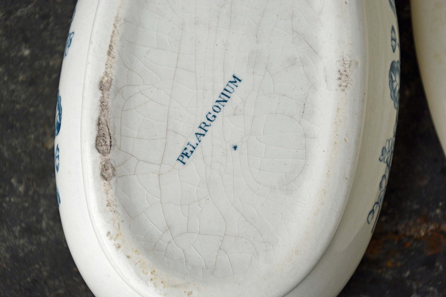 Stemplet "Købenshavns Fajancefabrik" og "Pelargonium".