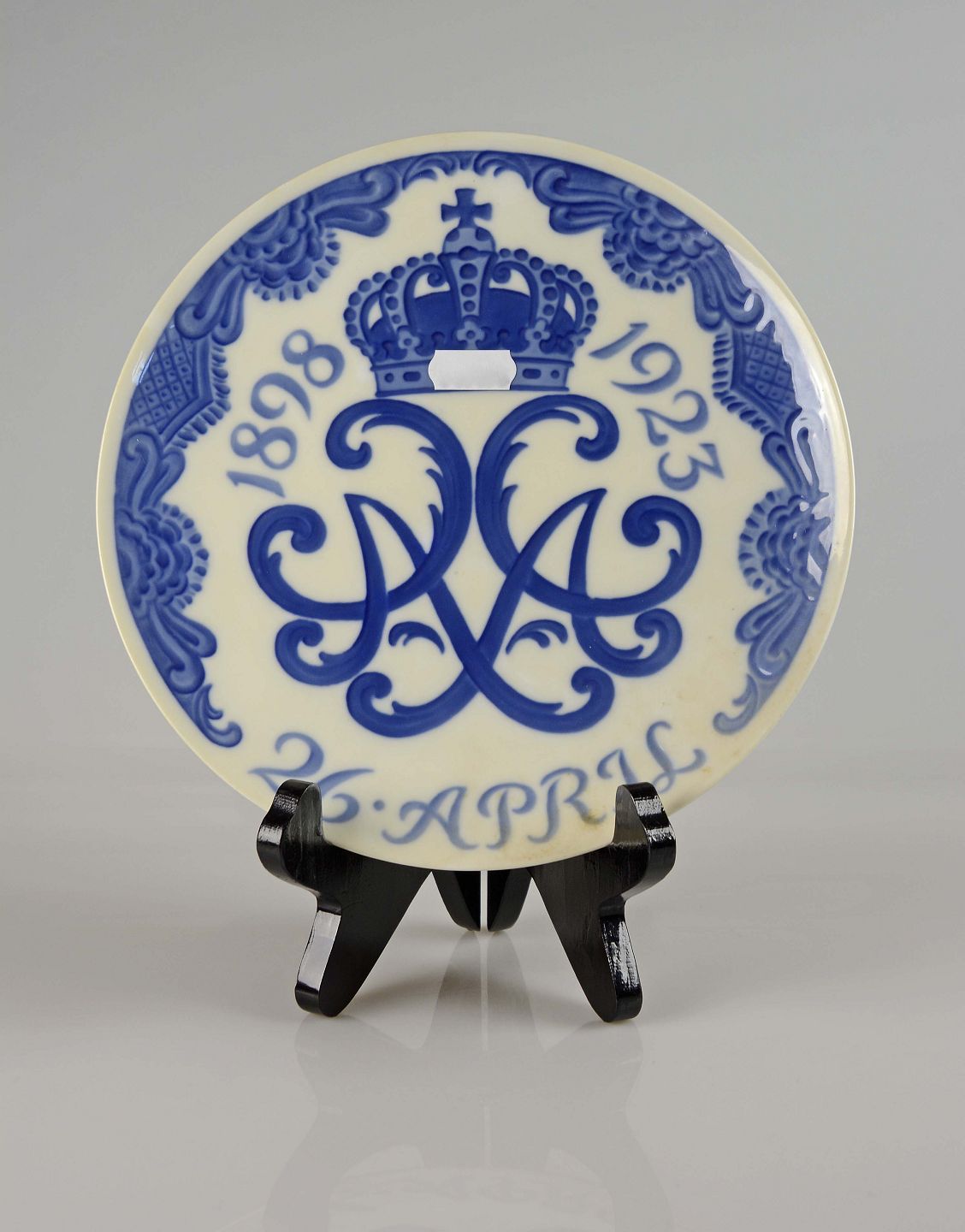 Platte for til fejring af Christian den X og Alexandrines sølvbryllup 26. april 1926, gift samme dato 1998 fra Royal Copenhagen nr. 191. Platte tegnet af Oluf Jensen.