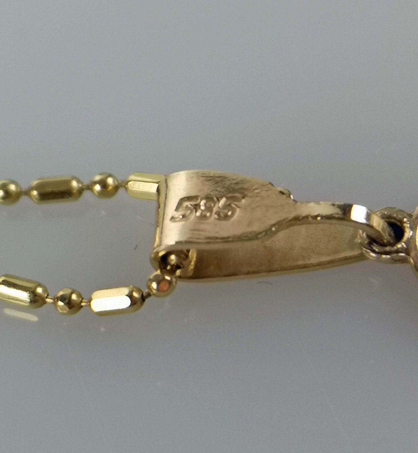 Lille Dagmar kors stemplet "585", korset sælges uden kæde. 14 karat guld kors.