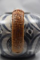 Karen Margrethe Karberg tekande i blå farvet mønster flettet hank.