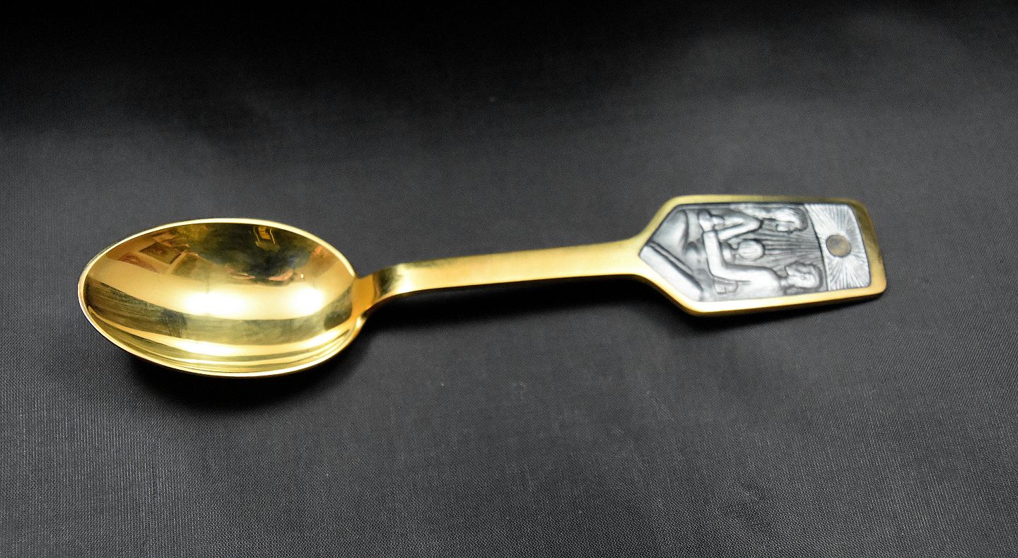 Juleskeen 1973, designet af Ib Spang Olesen. Fremstillet i Sterling sølv, der er guldbelagt.