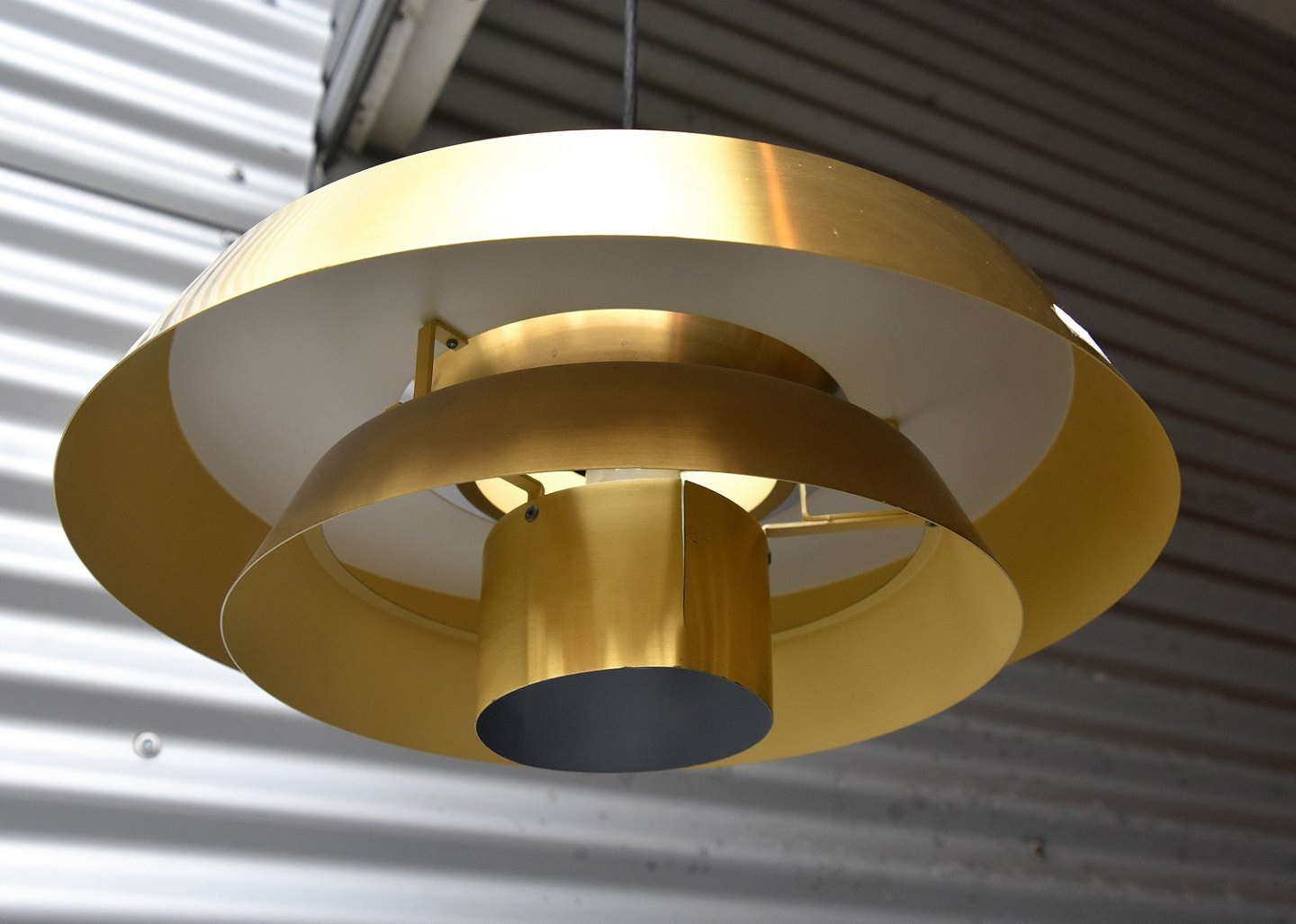 Messingfarvet Pendel "Nova", hvidmalet på inder skærm