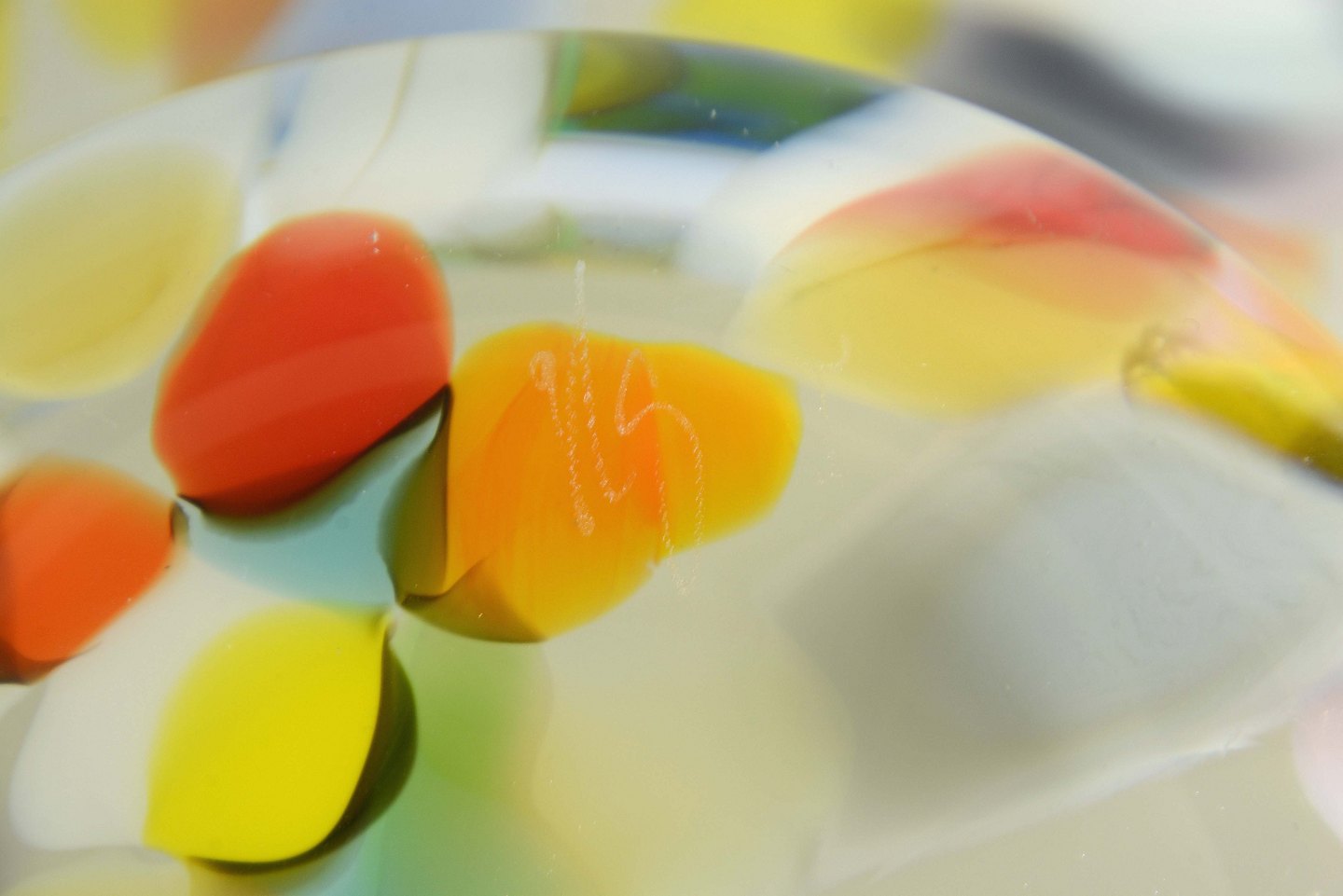 Intakt glas med enkelte ridser på undersiden