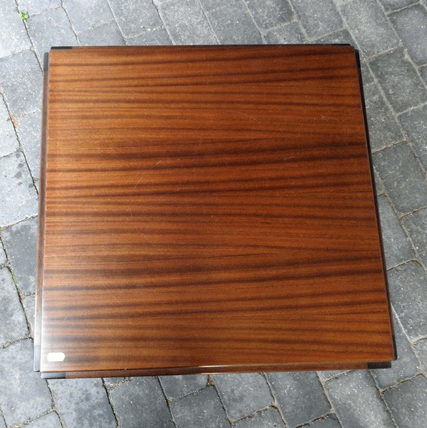 Kvadratisk sofabord i mørkt lakeret træ. Se anden varenr der er 2 ens borde.