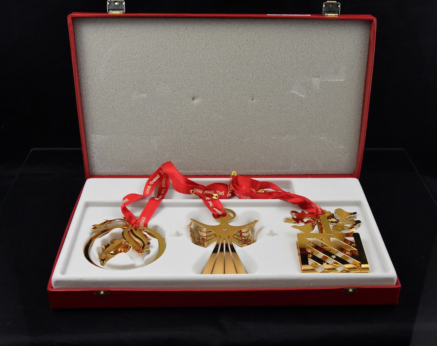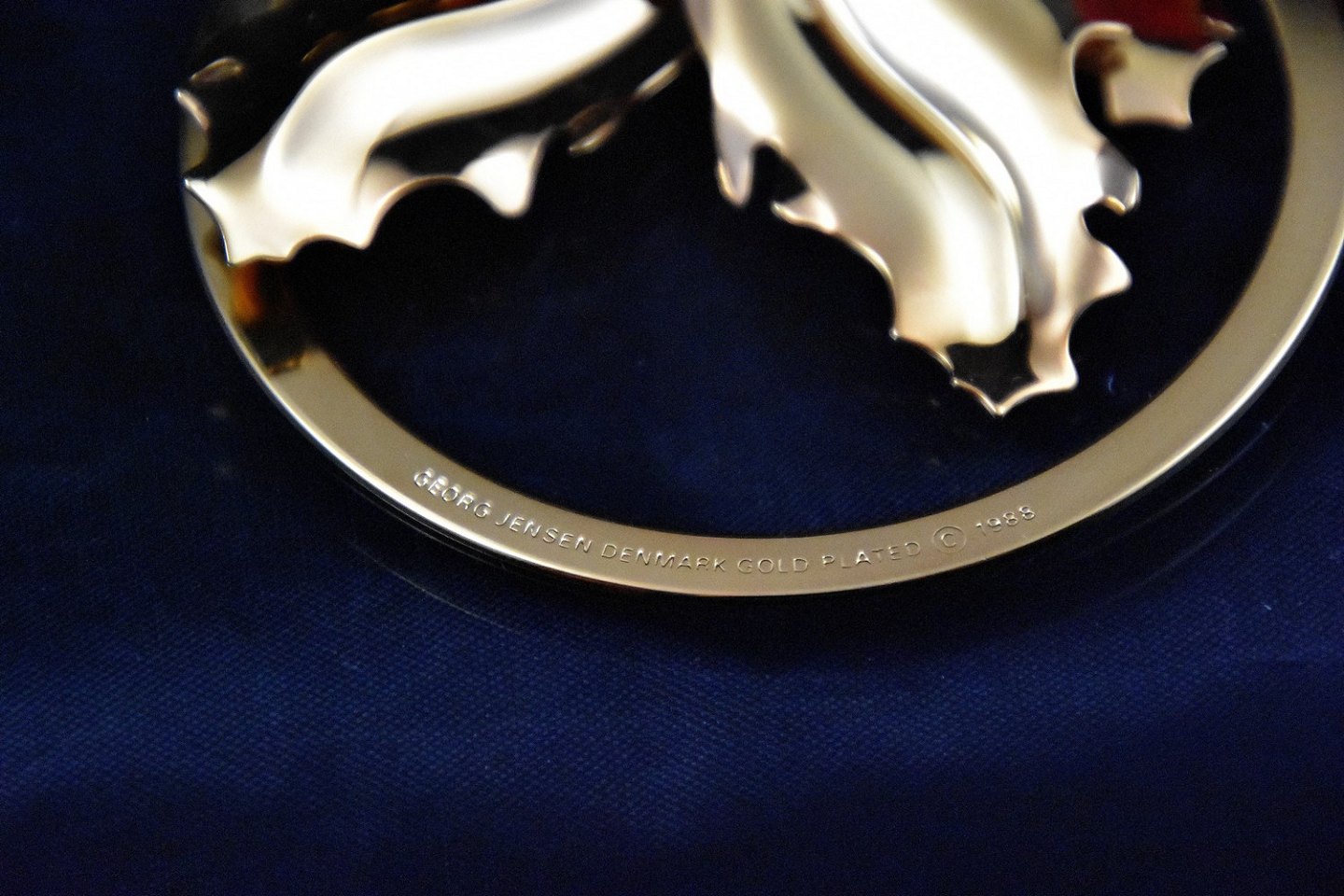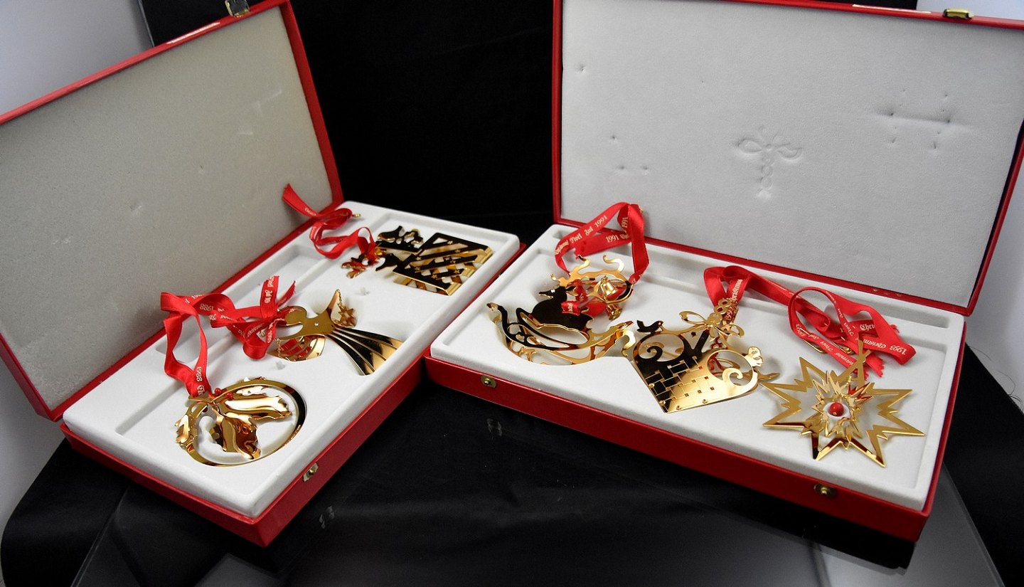 Juleophæng, belagt med 24 karats guld. Ophængene er fra 1991, 1992 og 1993. Design Georg Jensen
