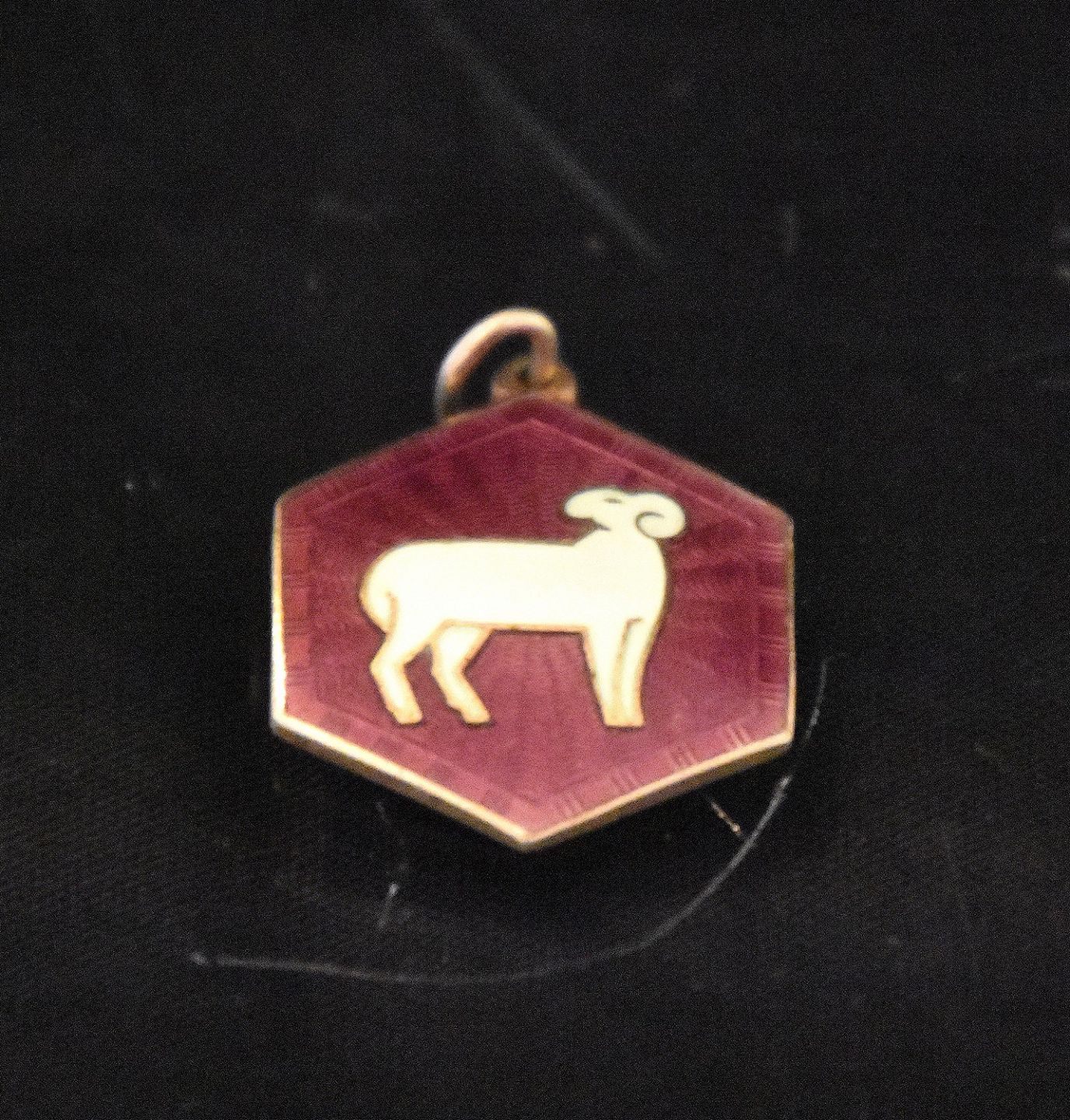 6- kantet stjernetegn - Vædderen. Guld belagt 925s og rød emaljeret.