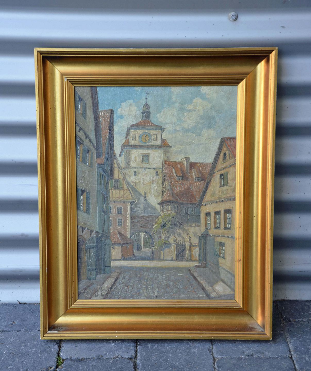 Maleri med motiv af Rothenburg by af A. Kragh Petersen
