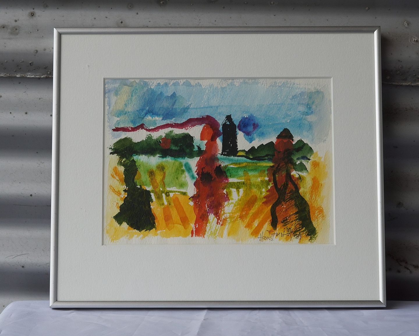 Akvarel i passepartout. Abstrakt landskab.