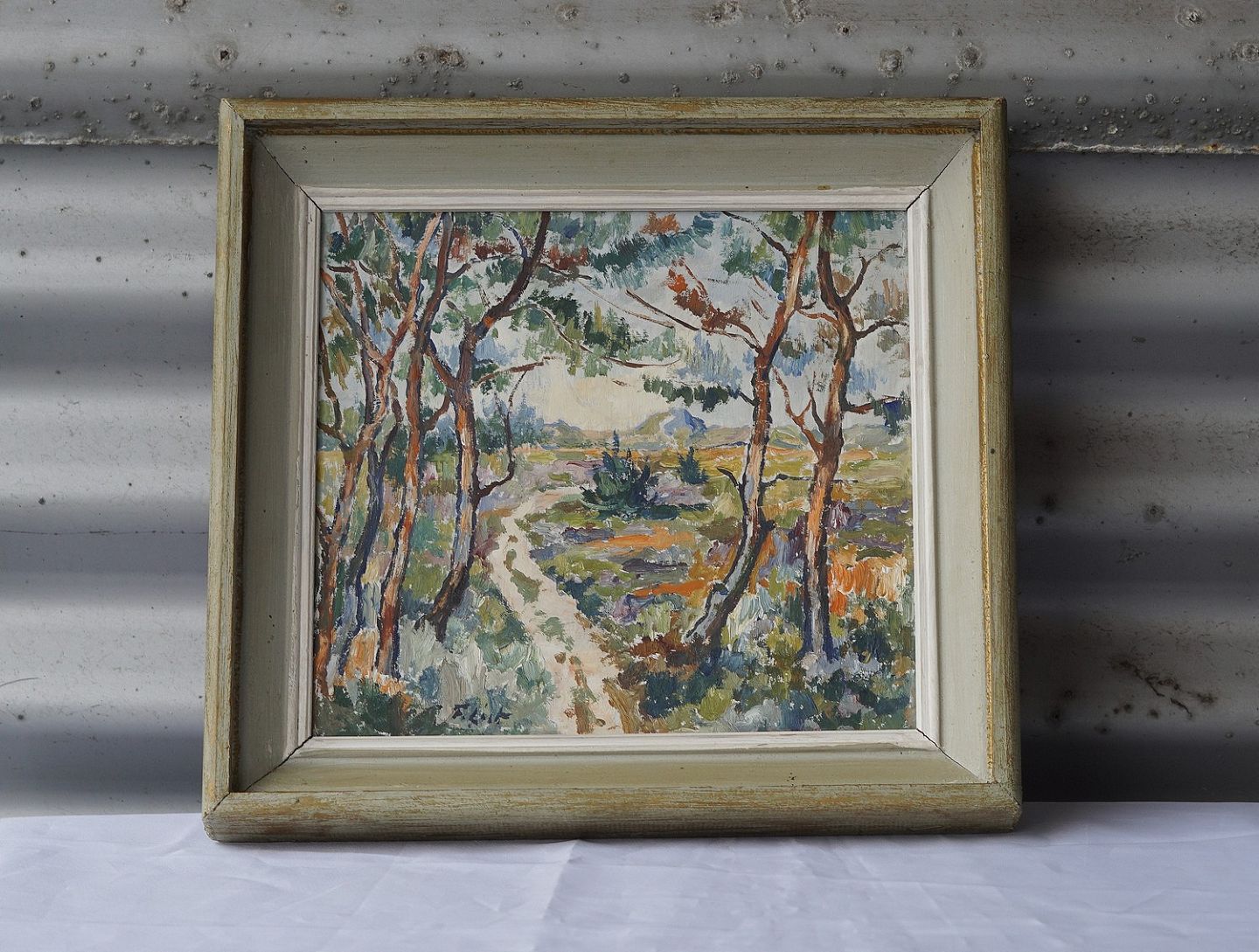 Lille maleri med skovmotiv