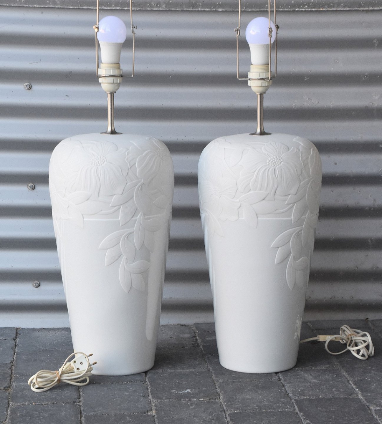 Royal Copenhagen, hvid gulvlampe. Lampen hedder Deauville og er designet af Annegrethe Halling Koch.